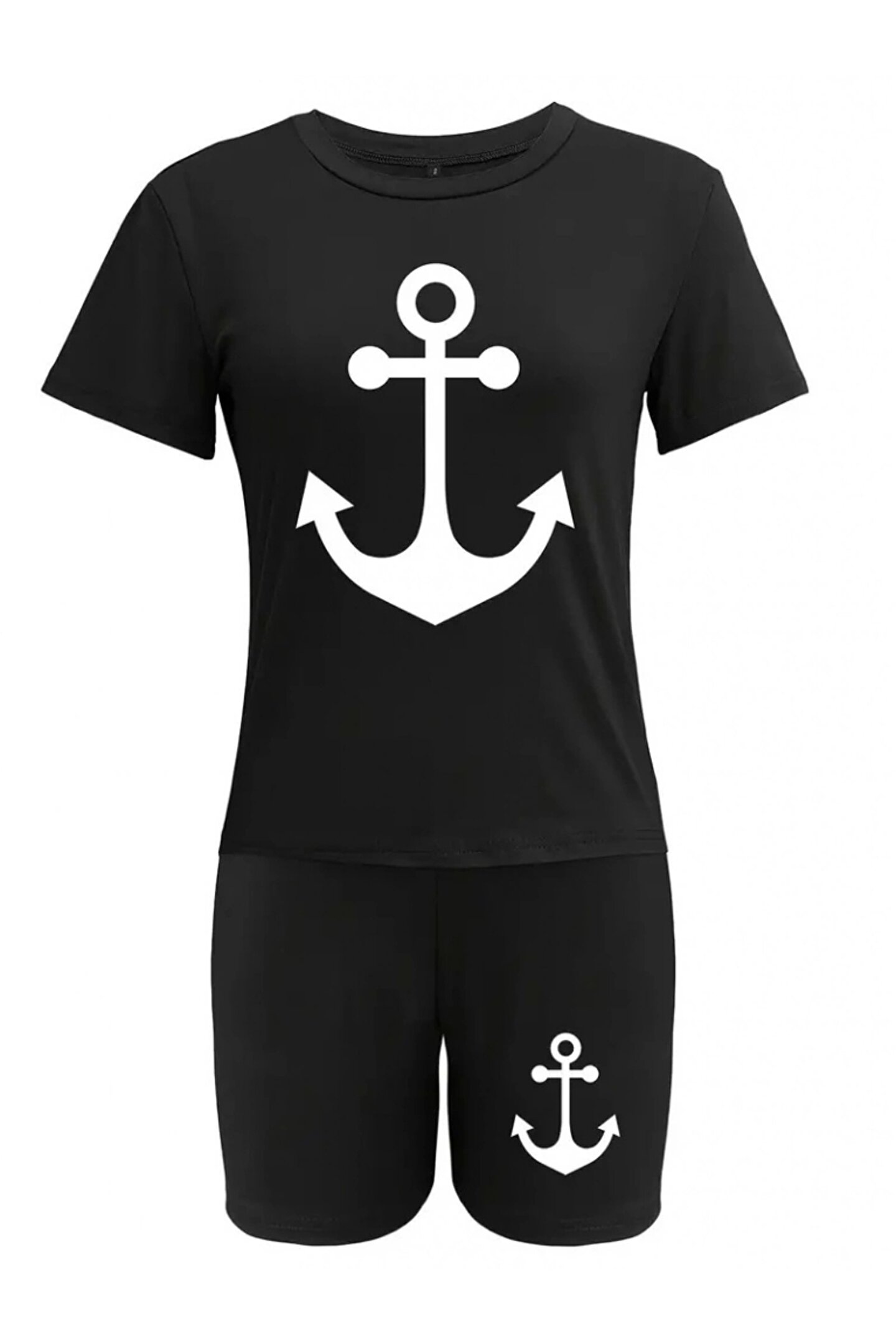 Kadın Kısa Kollu çapa Baskılı Viskon Ikili Takım