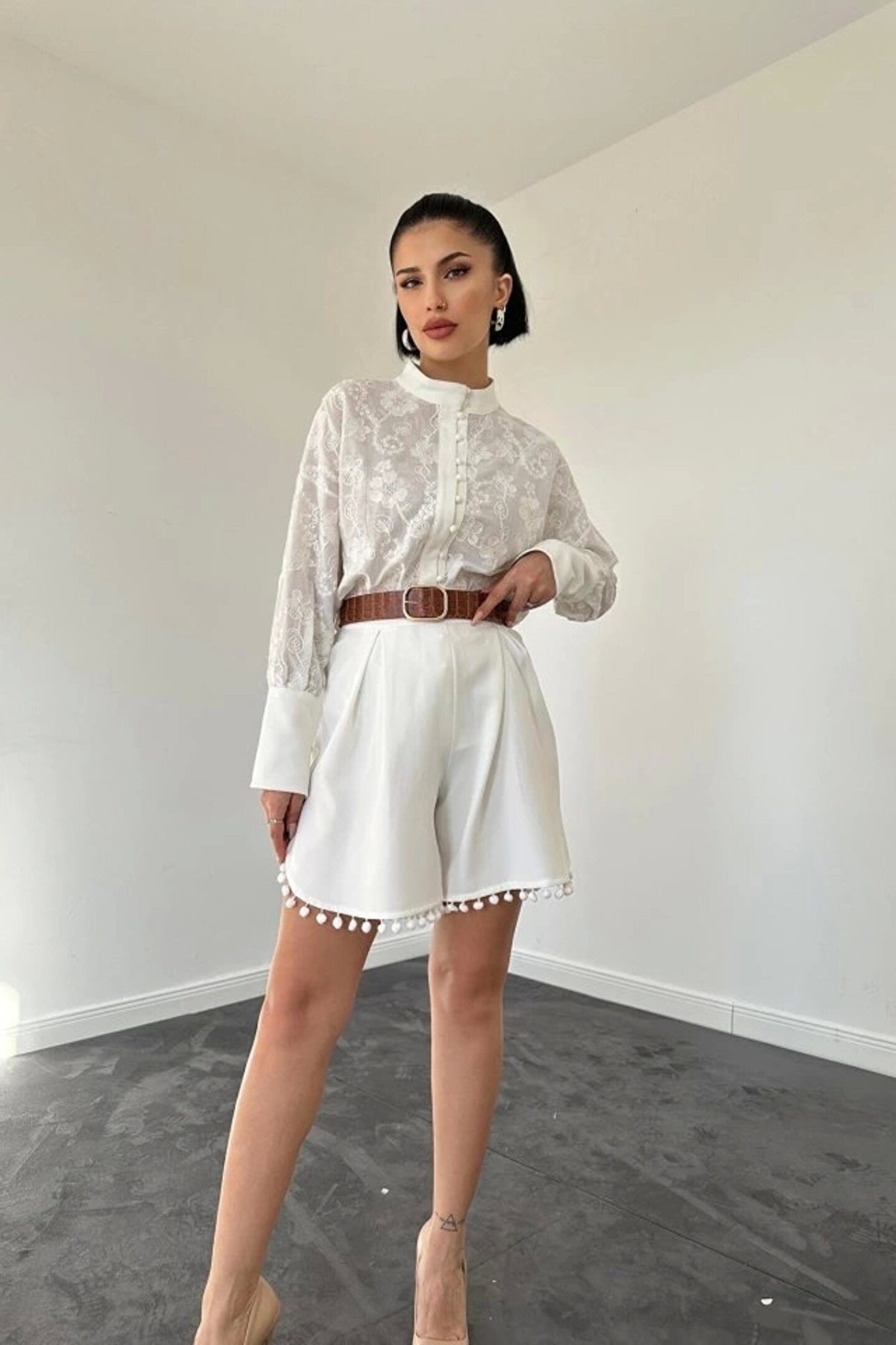 Ekru Dantelli Gömlek Ve Ponpolu Şort Takım Velmora Fashion - Kadın Giyimde Kalite ve Şıklığın Adresi! Velmora Fashion, kadın giyimde kalite, şıklık ve konforu bir araya getiren özel tasarımlar sunar.; Günlük giyimden özel davet kombinlerine kadar her tarza hitap eden koleksiyonlarımız, özenle seçilmiş yüksek kaliteli kumaşlar, rahat kesimler ve modern dokunuşlarla üretilir.; Her sezonun trendlerini yakından takip eden Velmora Fashion, zamansız ve modaya uygun parçalar ile stilinizi en iyi şekilde yansıtmanıza yardımcı olur.; Şık elbiselerden rahat sweatshirt lere, klasik gömleklerden spor kombinlere kadar geniş ürün yelpazemizle, hem günlük hem de özel anlarınız için mükemmel seçenekler sunuyoruz.; ✔ Birinci sınıf kumaş kalitesi ve üstün işçilik ✔ Moda trendlerine uygun modern ve şık tasarımlar ✔ Günlük, ofis ve özel günler için geniş koleksiyon ✔ Rahat, şık ve uzun ömürlü kadın giyim ürünleri Velmora Fashion ile tarzınızı en iyi şekilde tamamlayın! Kadın giyimde kaliteyi ve şıklığı bir arada sunan koleksiyonlarımızı keşfedin!