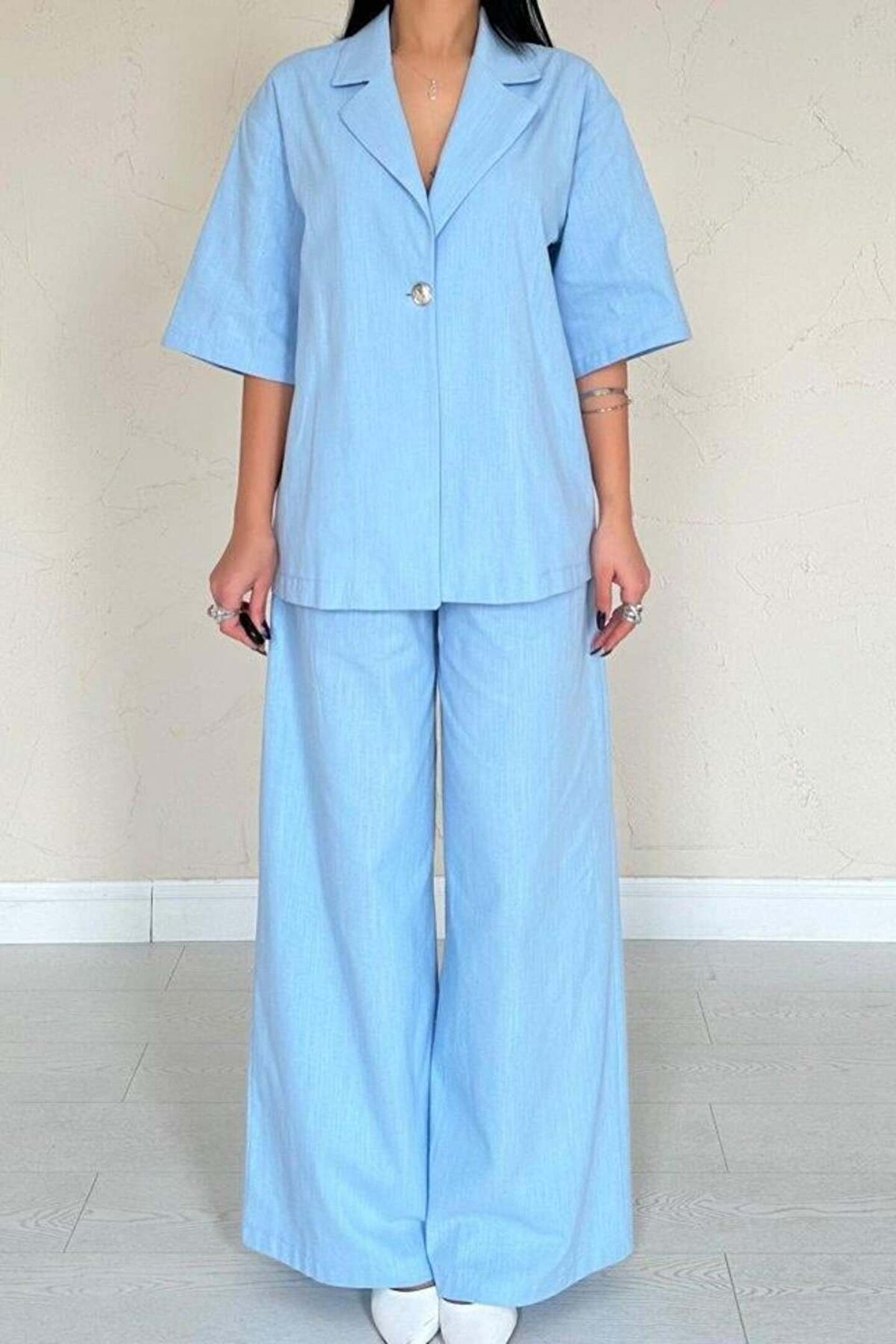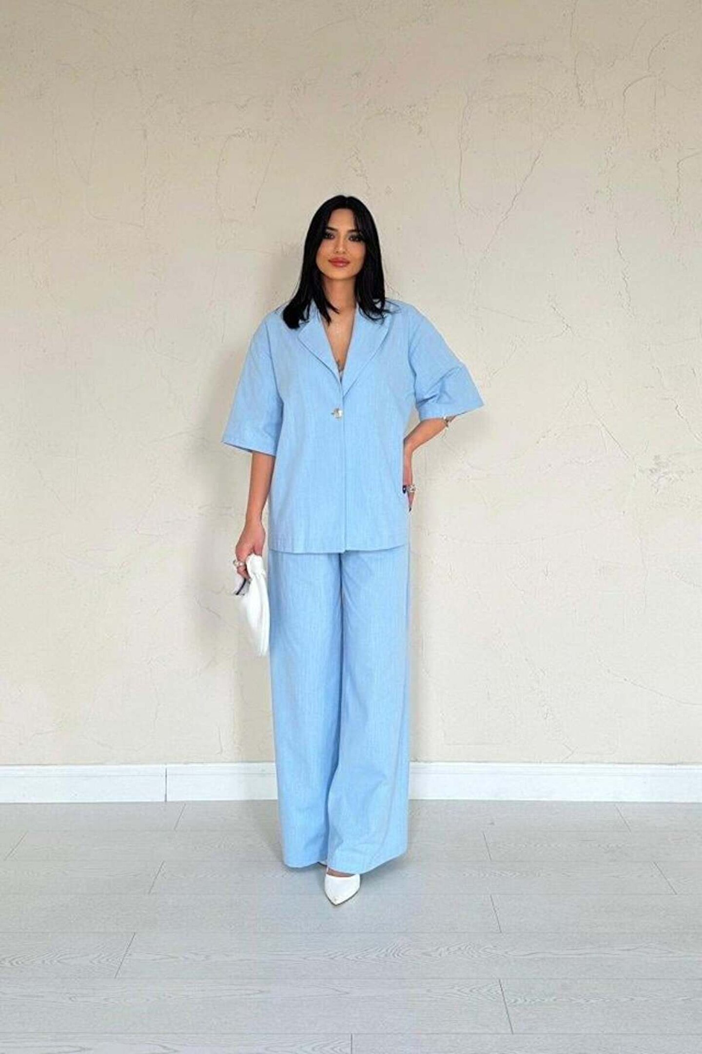 MODA ZERAFİNA Mavi Önü Tek Düğmeli Ceket Pantolon Takım