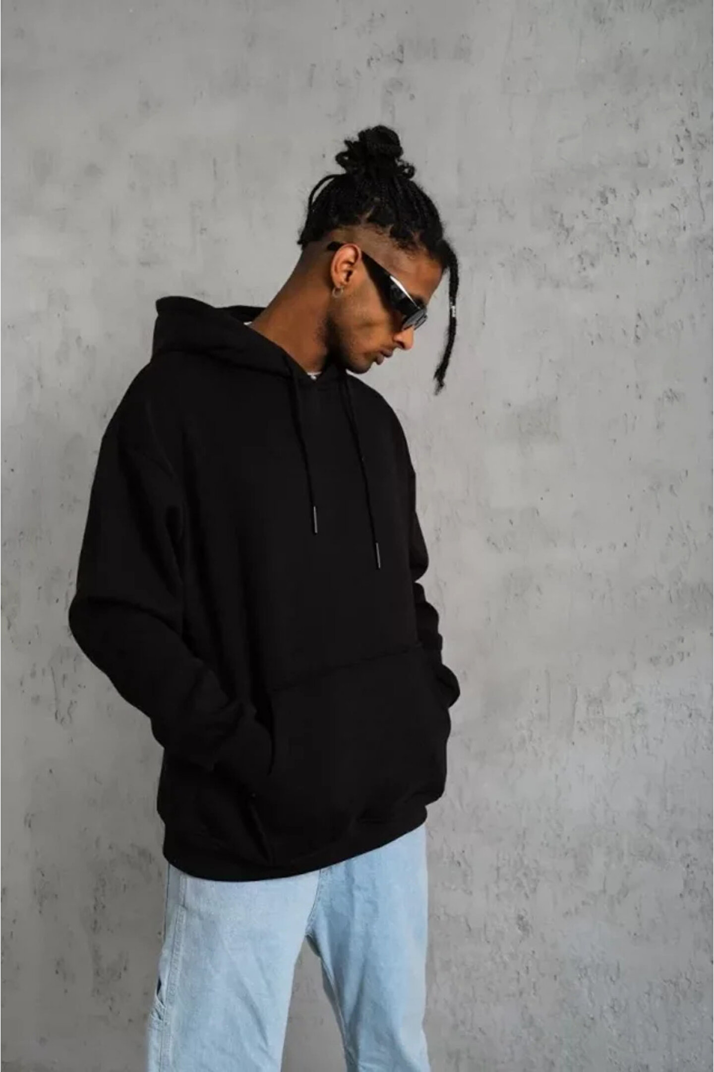Erkek Düz Kapüşonlu Sweat - Siyah