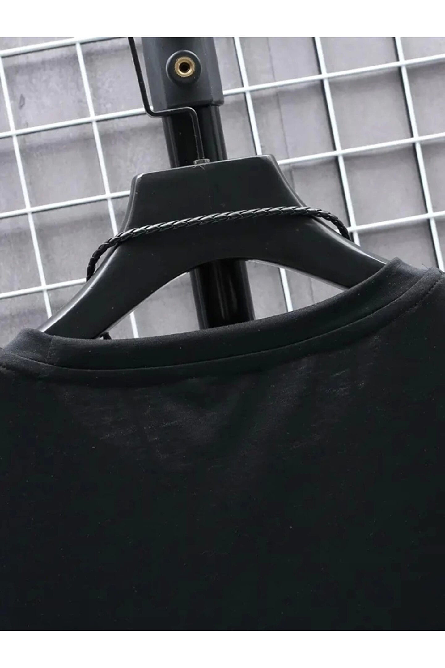 Baskılı Oversize Bisiklet Yaka T-shirt - Siyah