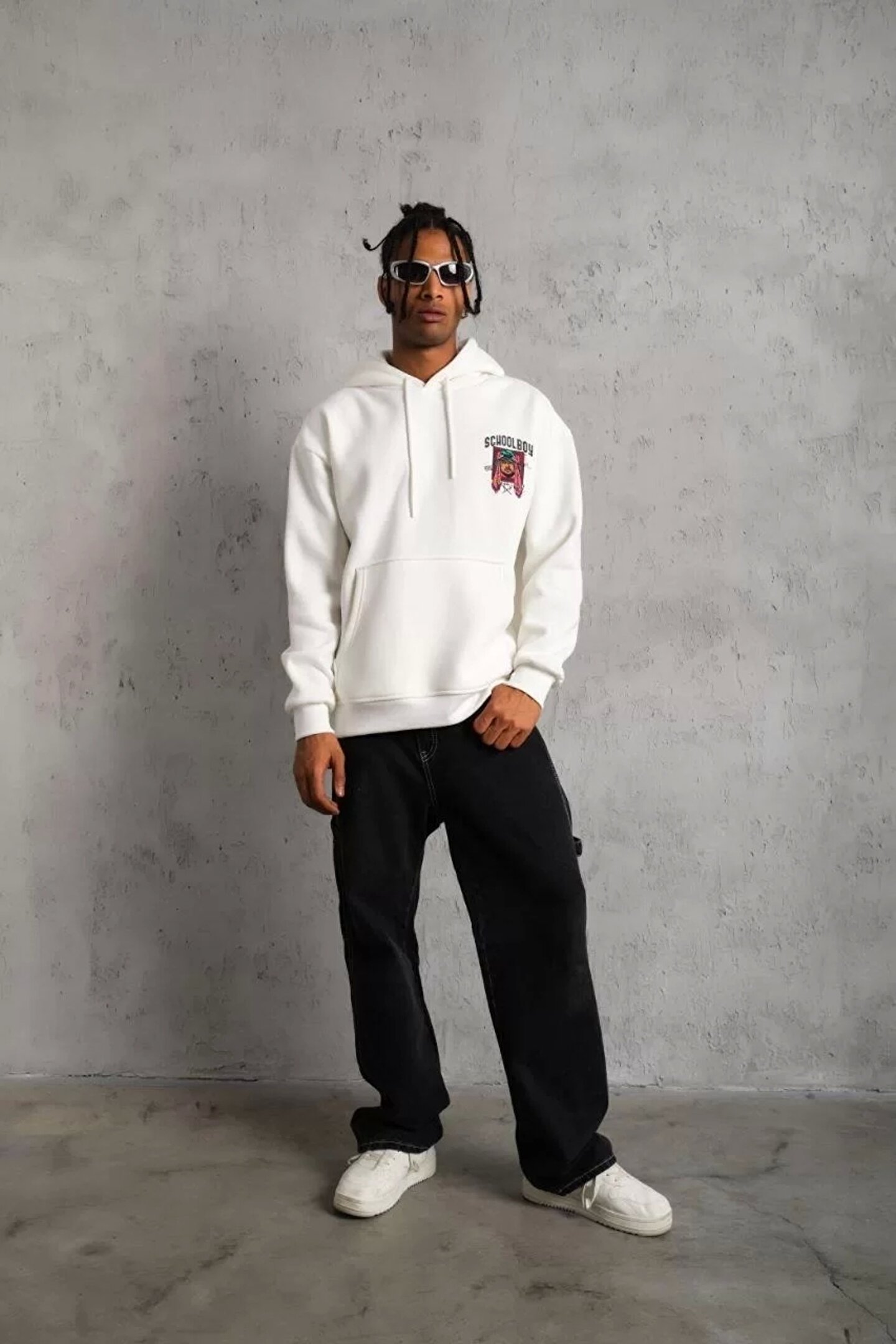 modamtn Erkek SCHOOL BOY Baskılı Kapüşonlu Sweat - Beyaz