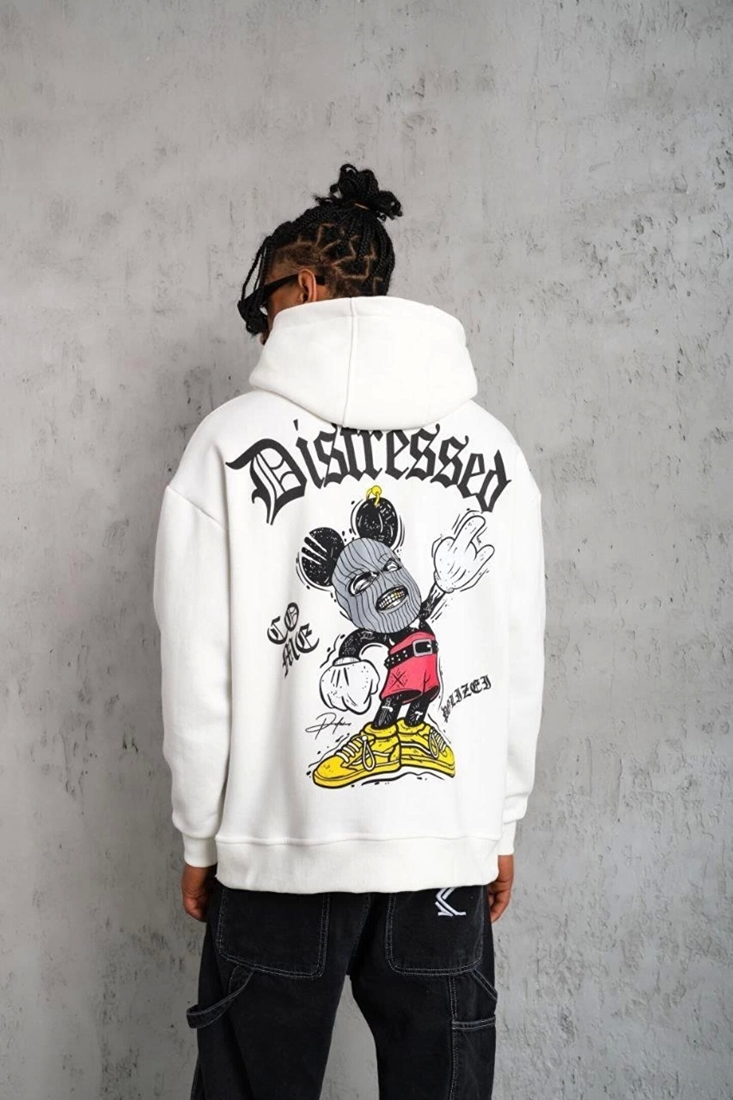 Erkek Üç İplik Baskılı Kapüşonlu Sweat - Beyaz
