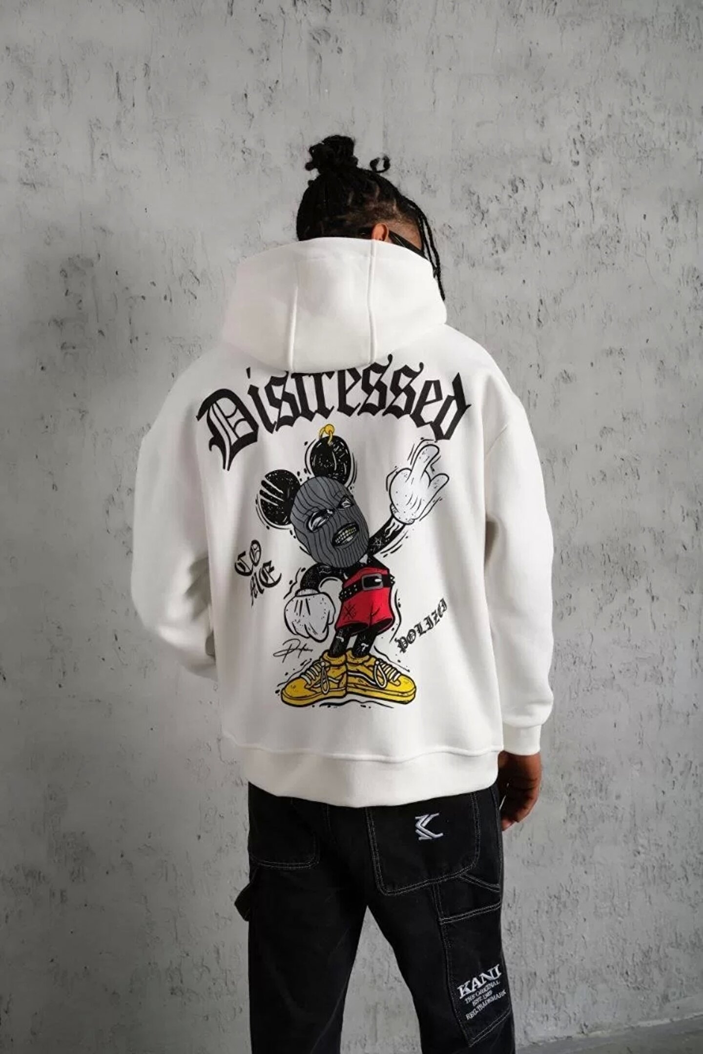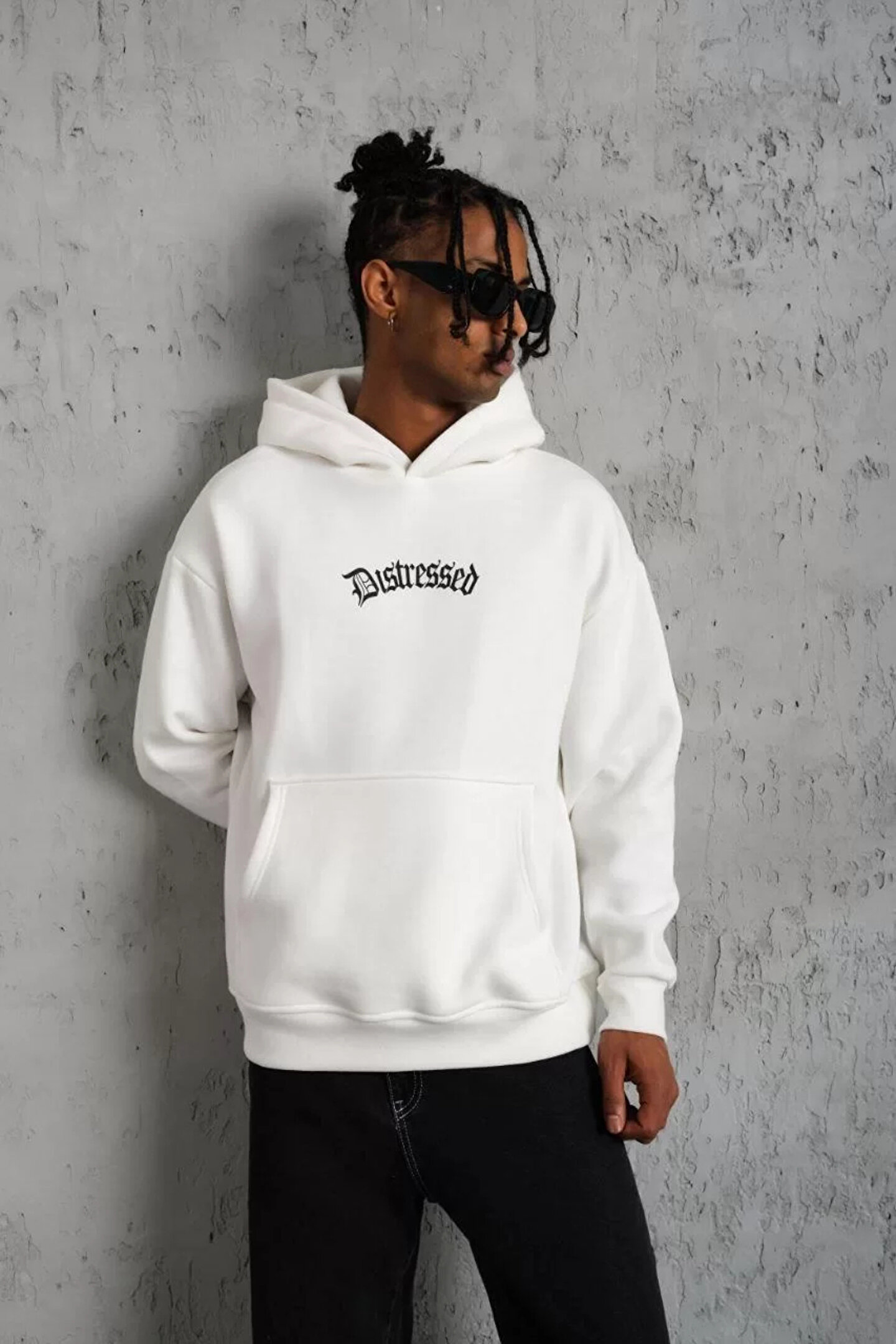 modamtn Erkek Üç İplik Baskılı Kapüşonlu Sweat - Beyaz