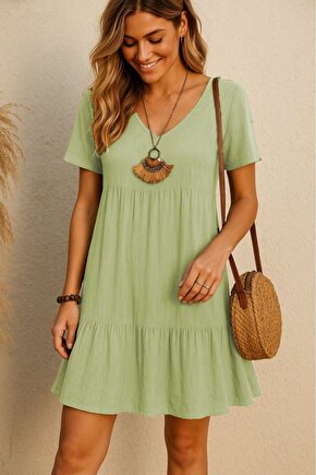 modamtn Kadın Kısa Kollu V Yakalı Fırfırlı Bürümcük Elbise