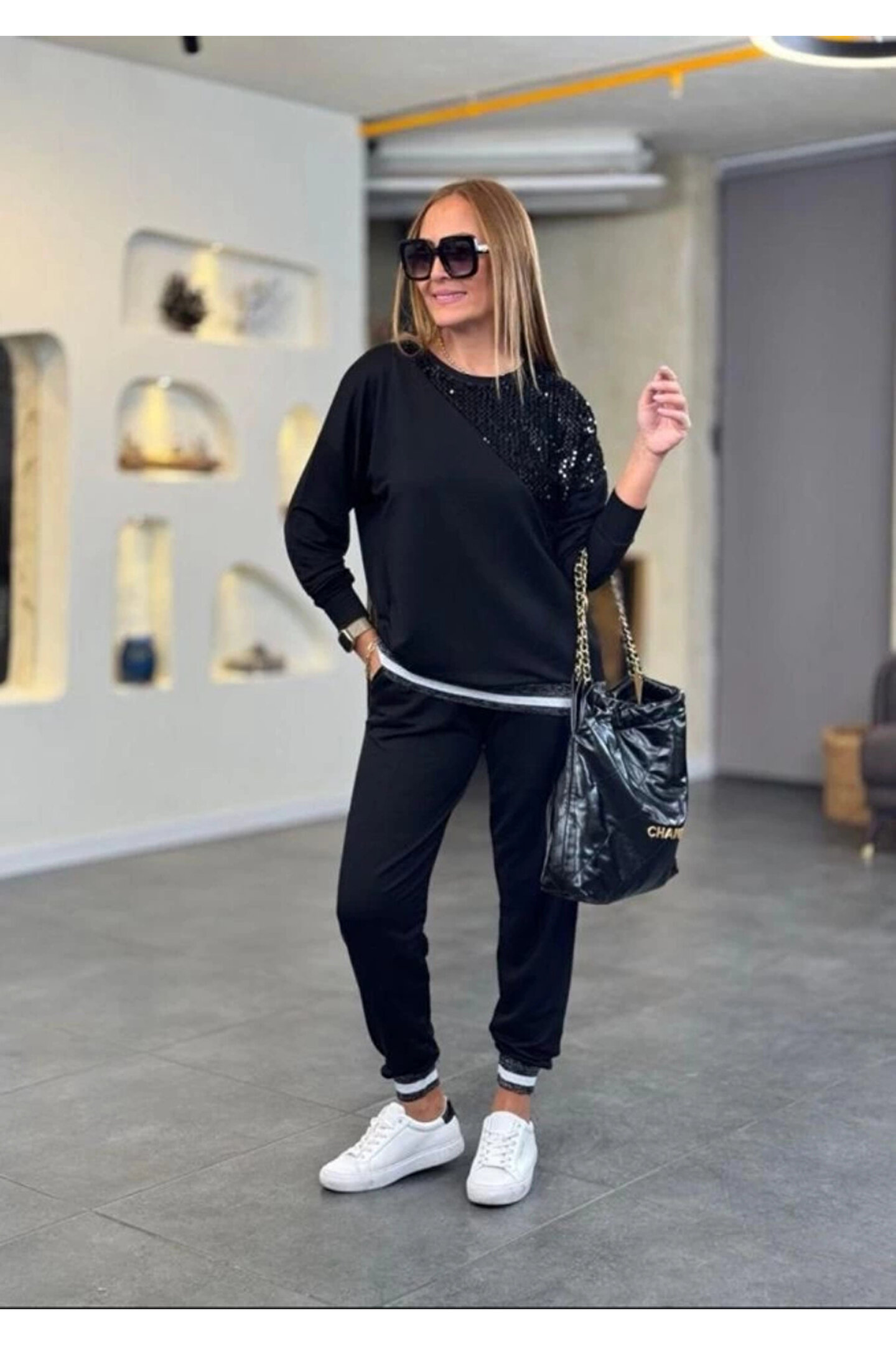 EQURİ Kadın Modal Kumaş Payetli Sim Ve Ribanalı Detay Ikili Takım