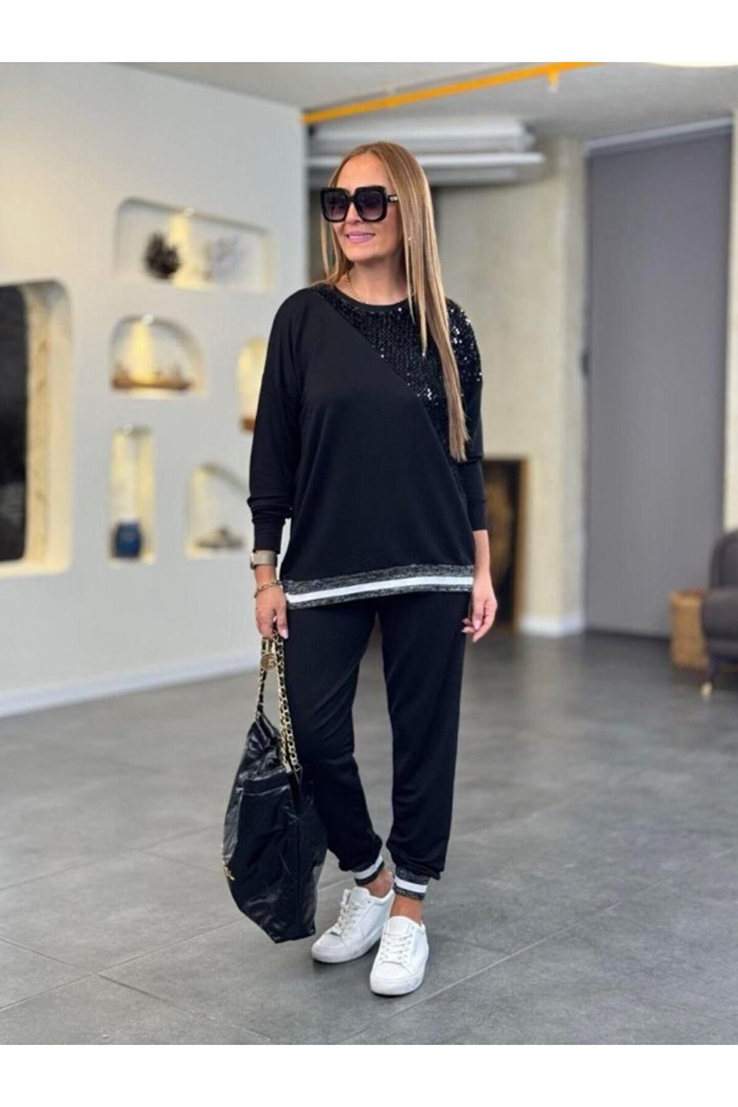 Modayakamoz EQURİ Kadın Modal Kumaş Payetli Sim Ve Ribanalı Detay Ikili Takım