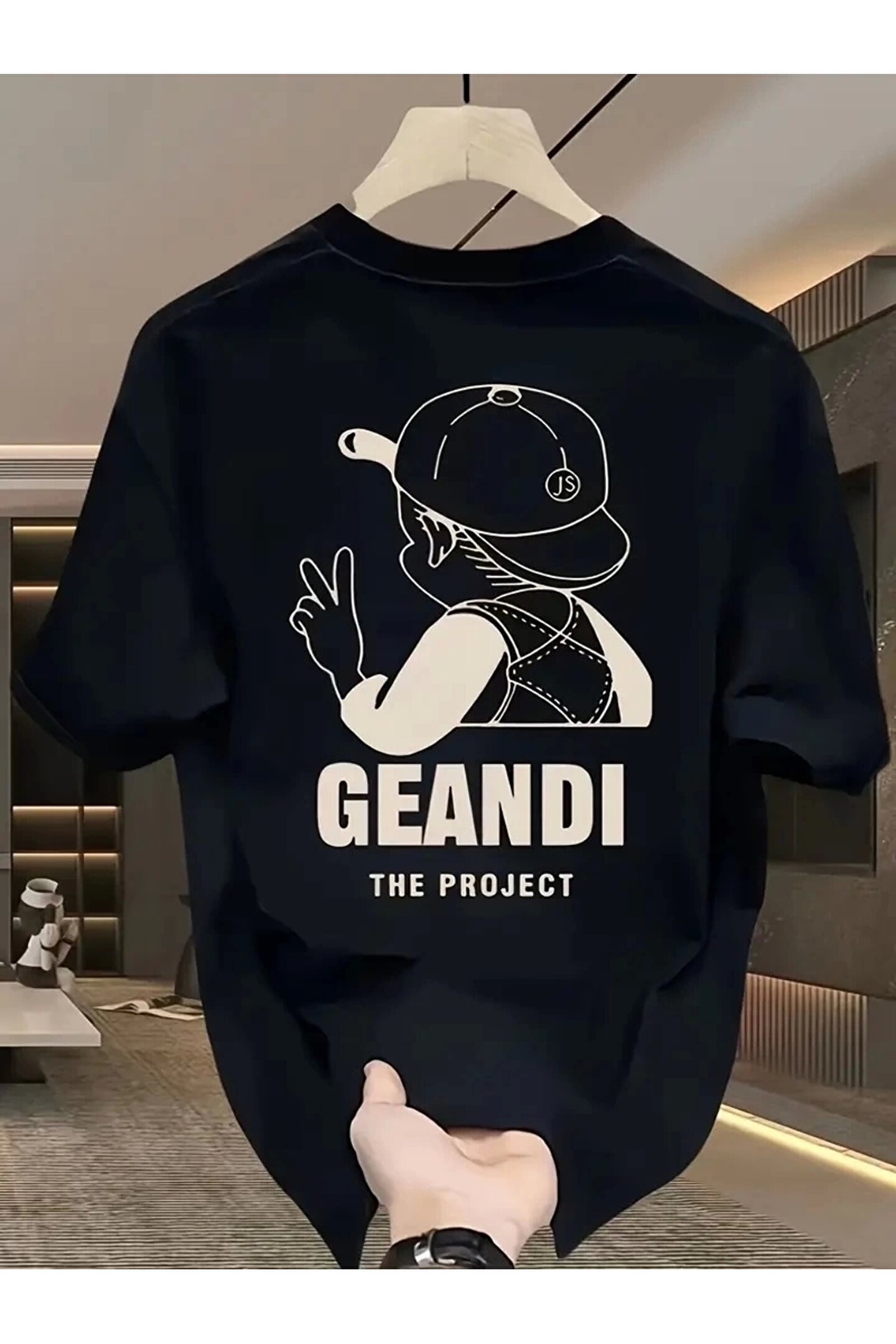 Modayakamoz Geniş Kesim Pamuklu Tişört - GANDHI The Project Baskılı, Siyah, Rahat Kesim, Kısa Kollu, Günlük Kı