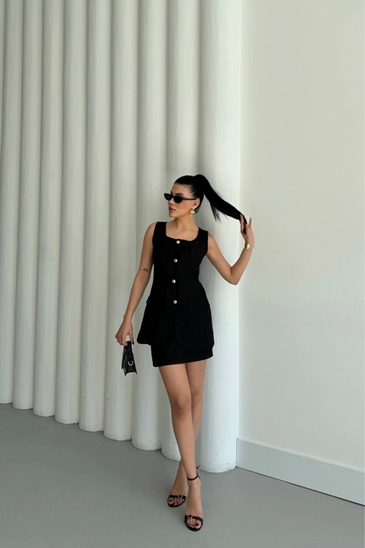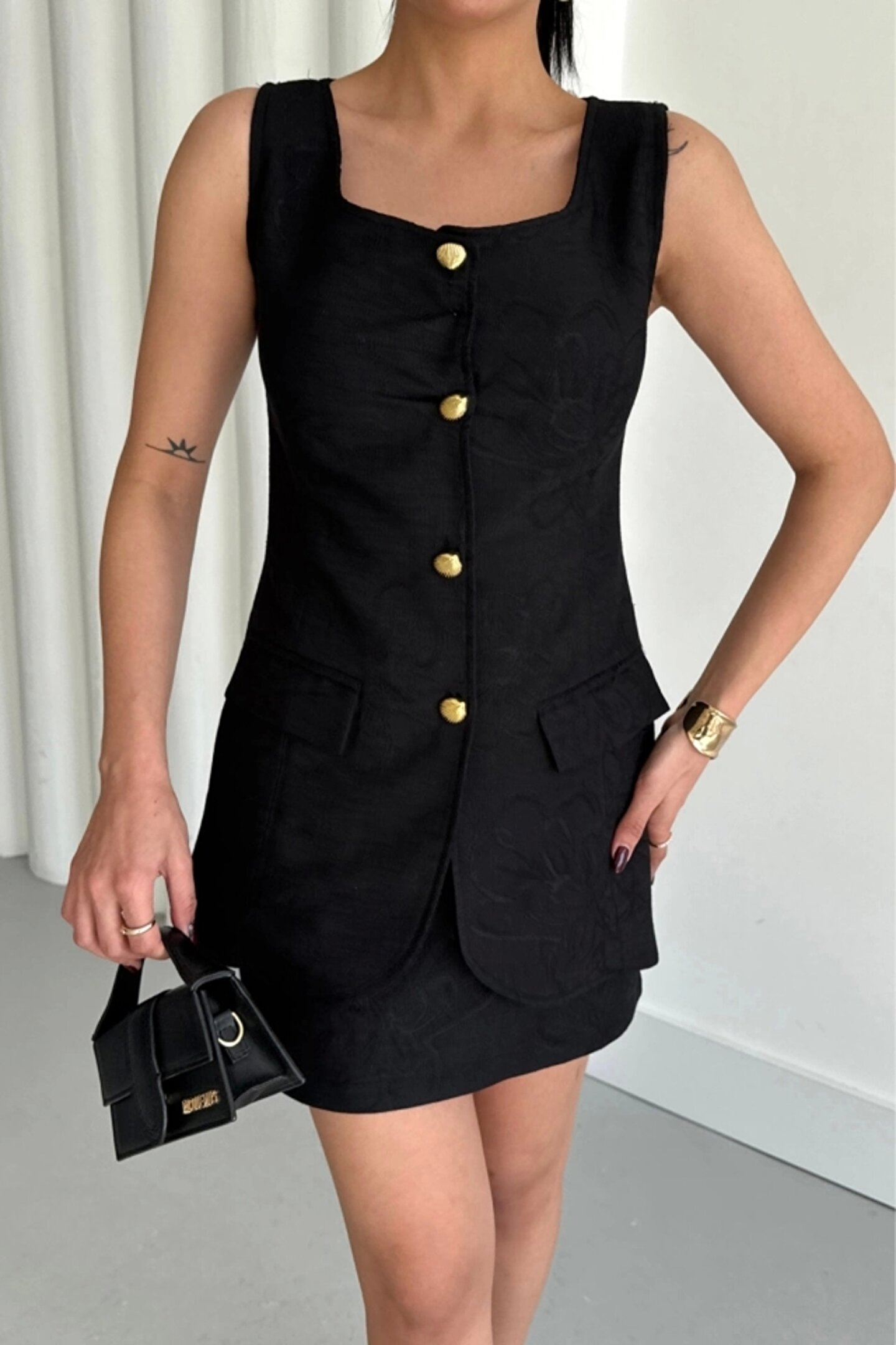 JAKAR KETEN YELEK - KISA ETEK TAKIM - Siyah