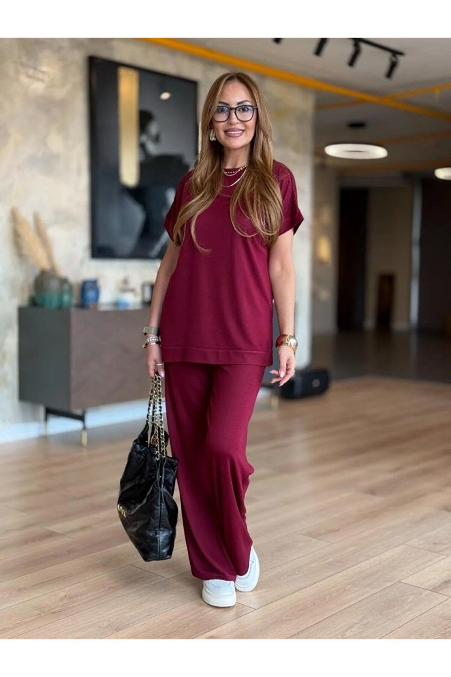 Modayakamoz Kadın Kısa Kollu Bisiklet Yaka Viskon Iki Iplik Bluz Ve Pantolon Ikili Takım