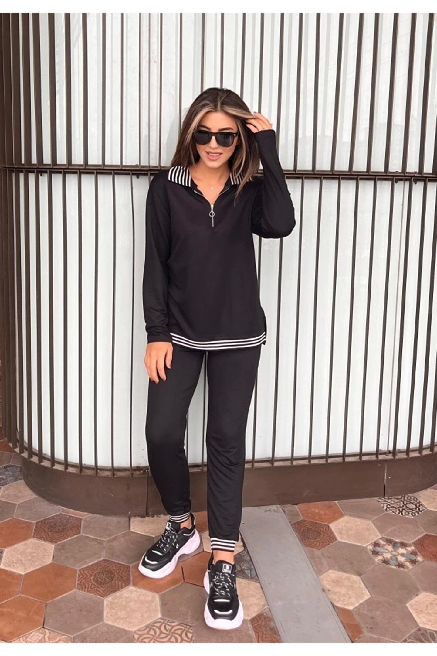 Modayakamoz Kadın Uzun Kollu Ribana Ve Fermuar Detay Bluz Ve Yüksel Bel Pantolon 2li Takım