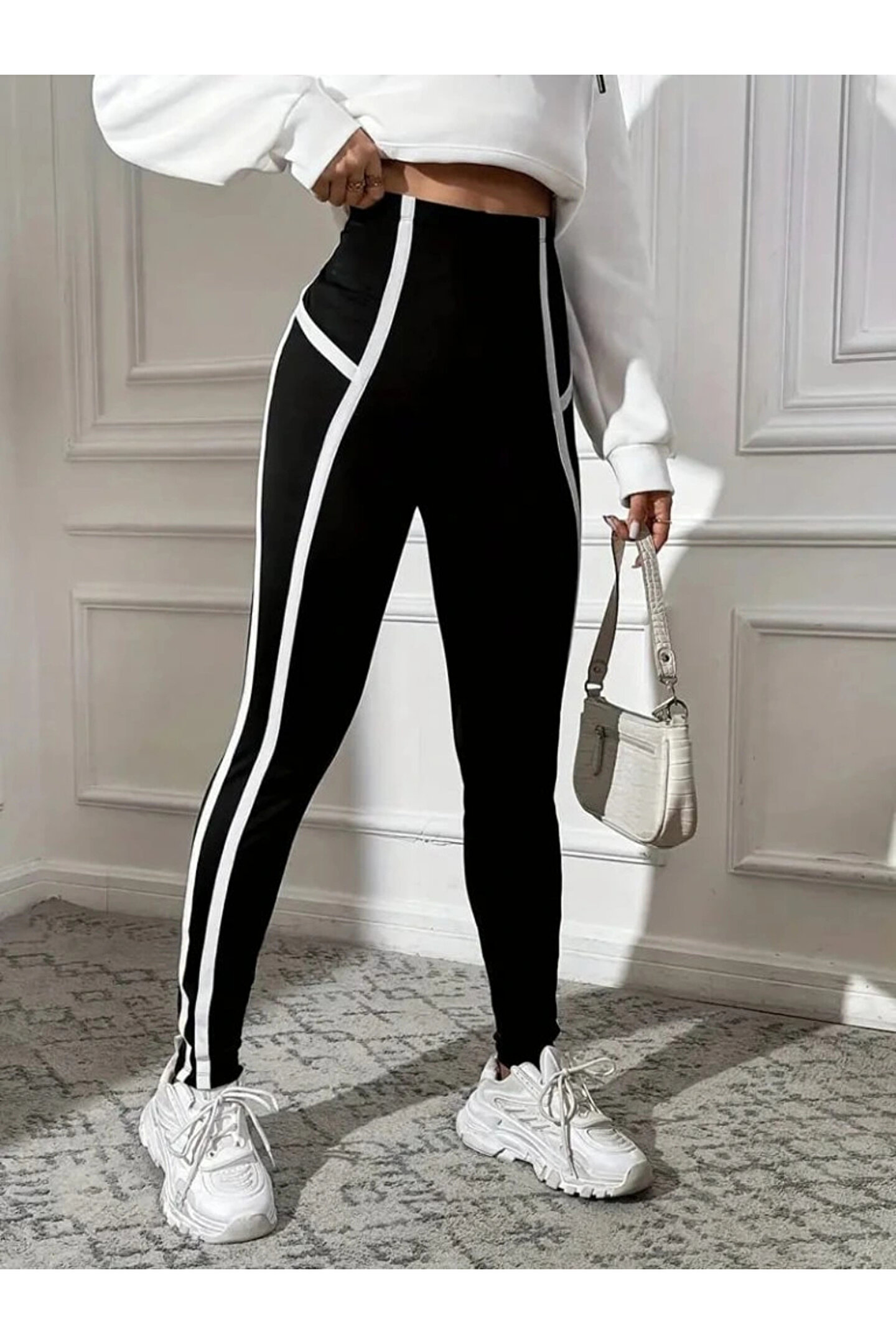 Kadın Yan çift şerit Detaylı Toparlayıcı Egzersiz Dalgıç Tayt