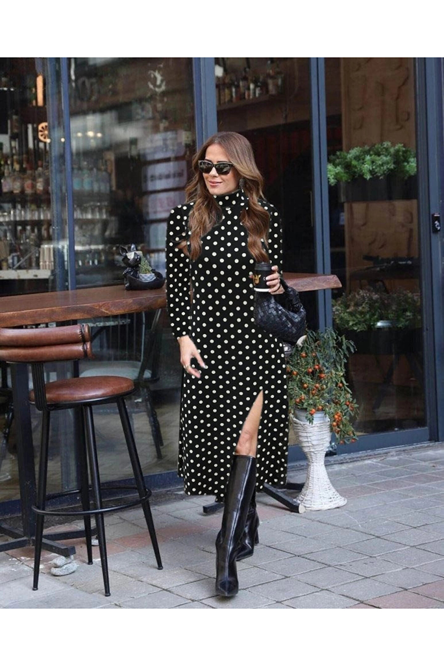 MDB Kadın Uzun Kollu Balıkçı Yaka Yırtmaçlı Krep Elbise