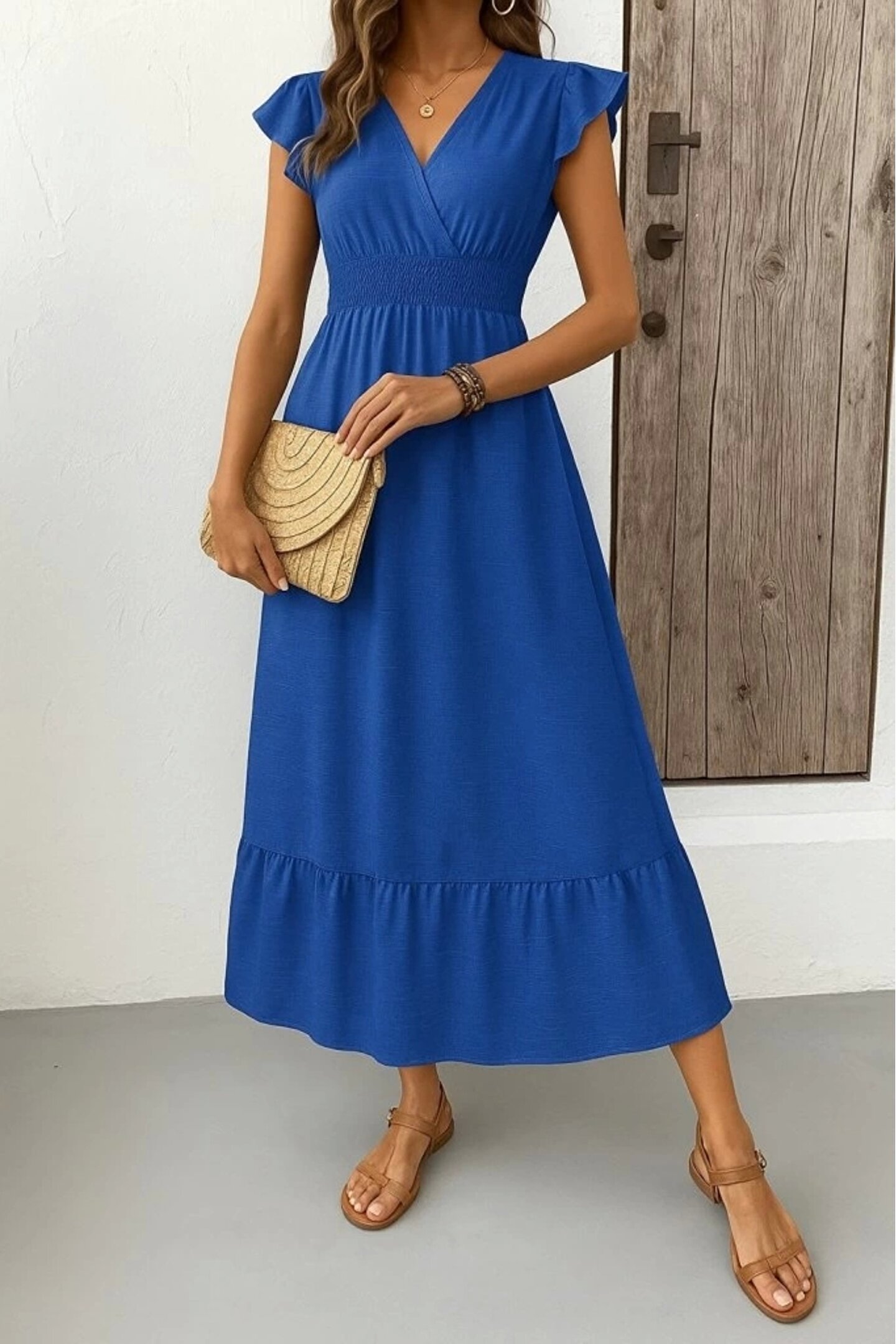 Moderie Butik Kadın Kısa Kelebek Kollu Kruvaze Yakalı Beli Lastikli Aerobin Elbise