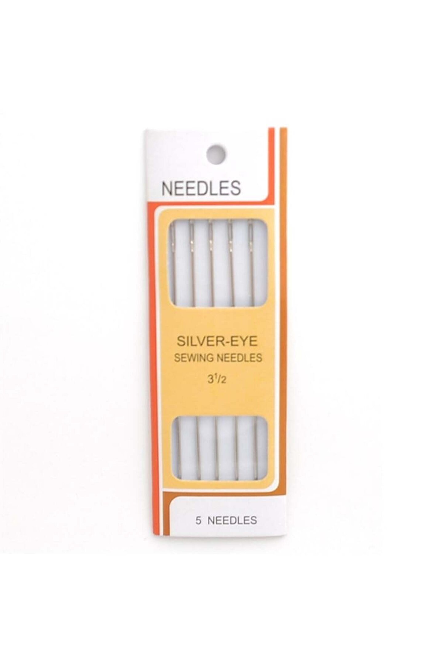 Ürün Adı: El Dikiş İğnesi / SILVER EYE Ebat: 3-1/2 Menşei:Türkiye Açıklama: Elde dikiş yapmak için kullanılır.; Evde, iş yerinde basit dikişler için kullanılır.