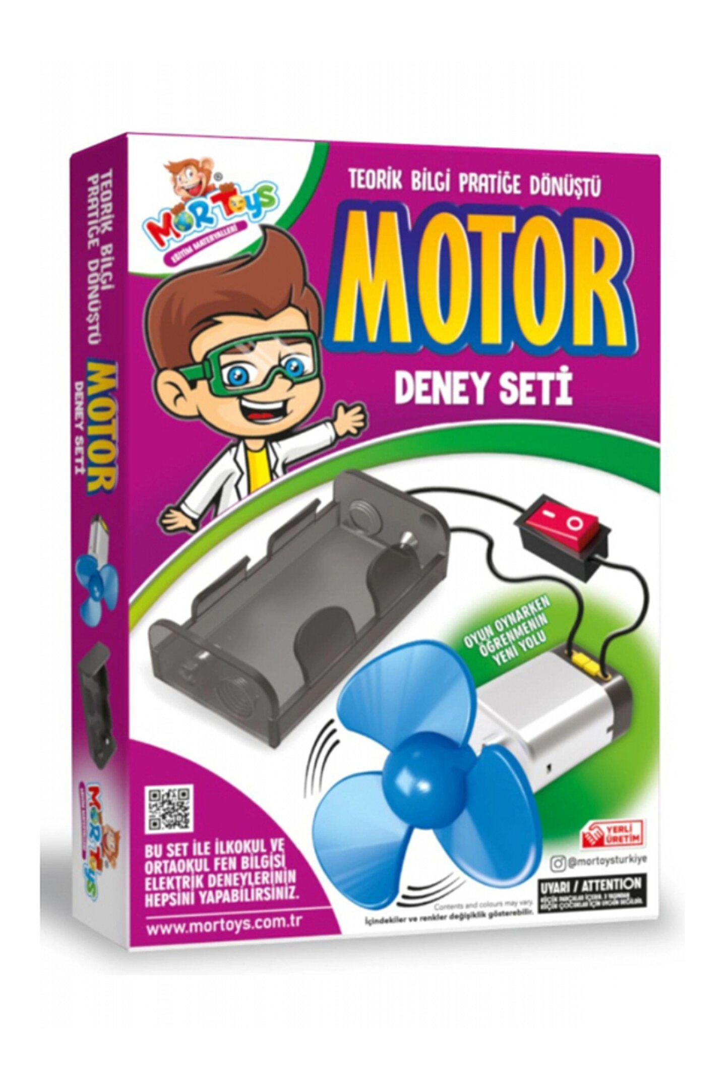Bu Set İle İlkokul ve Ortaokul Fen Bilgisi Elektrik Deneylerinin Hepsini Yapabilirsiniz.; ; Ürün İçeriği : Pil Yatağı, Anahtar, Kablo, Motor, Pervane.; ; !!! KUTU İÇERİSİNDE PİL BULUNMAMAKTADIR !!!;