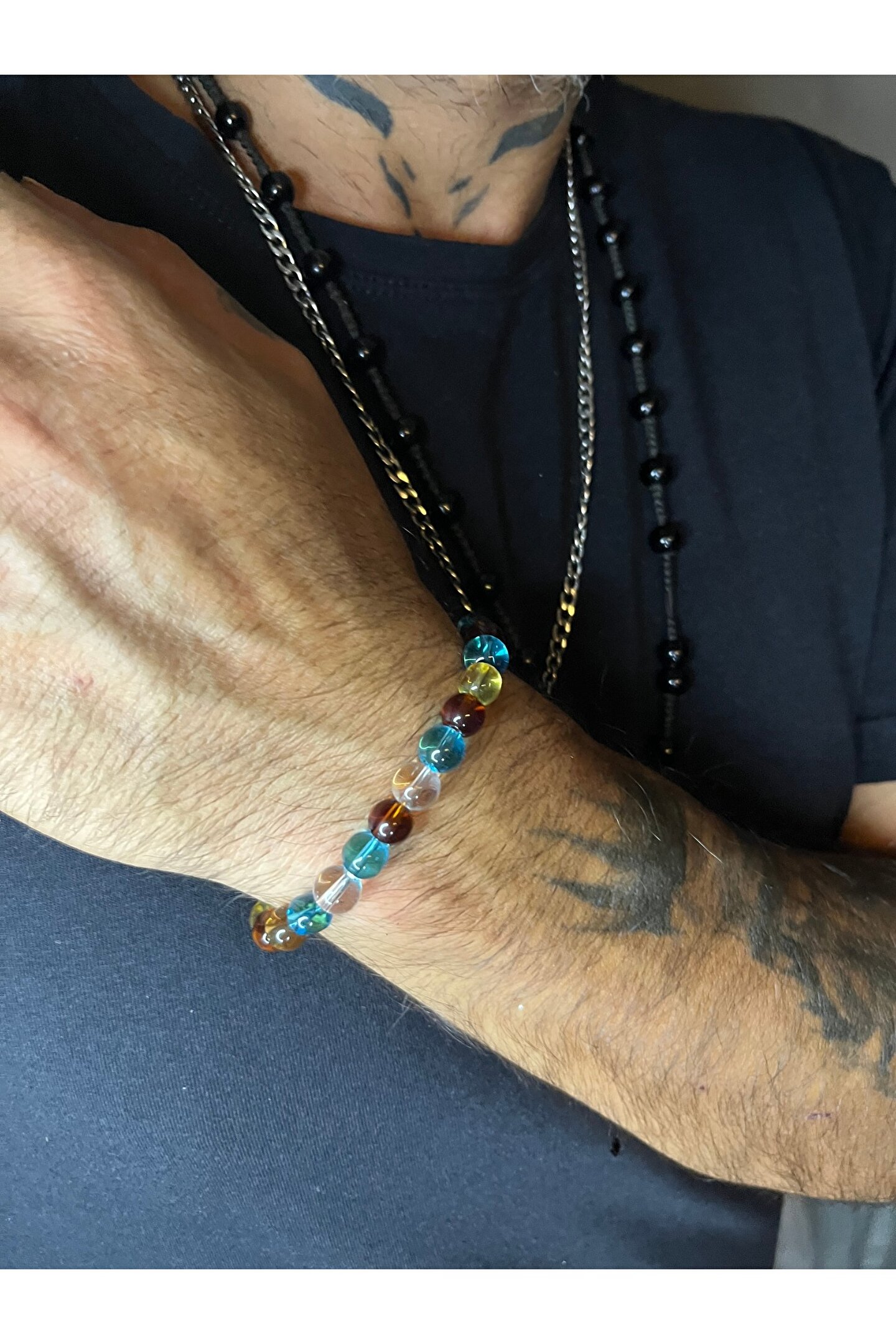 Mos Tespih Bonibon Karışık Cam Boncuk Doğaltaş Bileklik