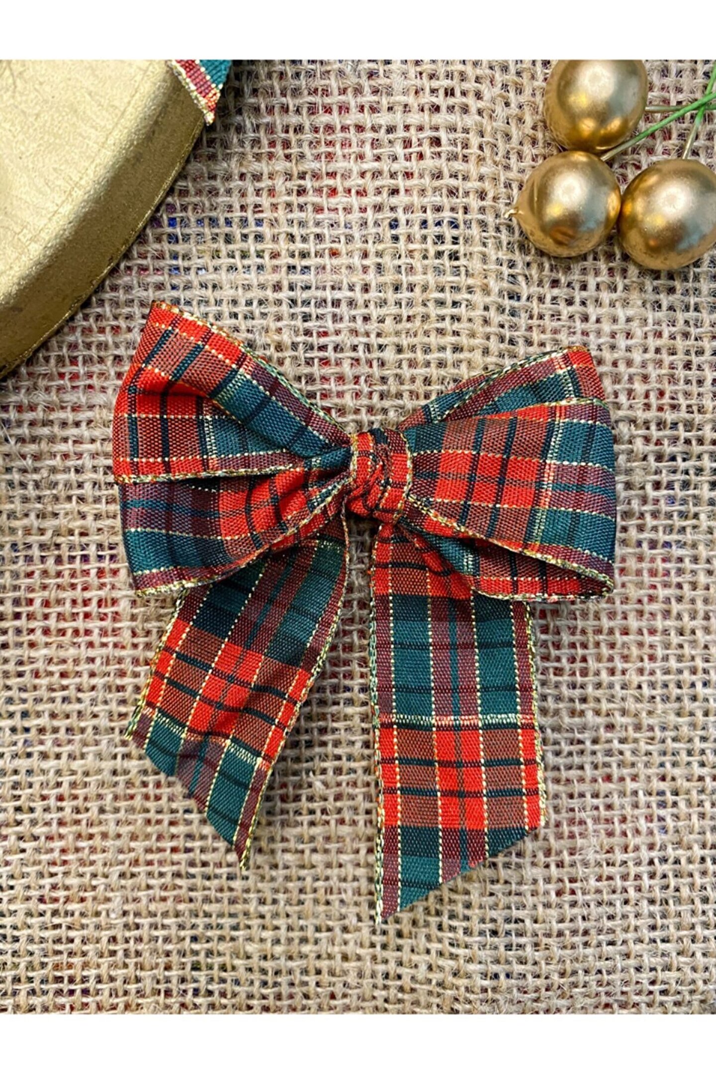 Motif Aksesuar 10lu Ekose Desenli Kenarları Altın Detaylı Fiyonk Yılbaşı Christmas