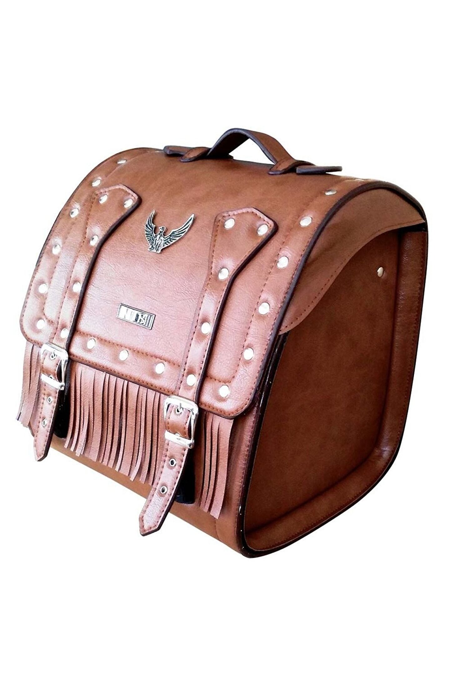 Motosiklet Deri Arka Çanta Valiz Mod Chopper Kahverengi Motor Arka Çanta