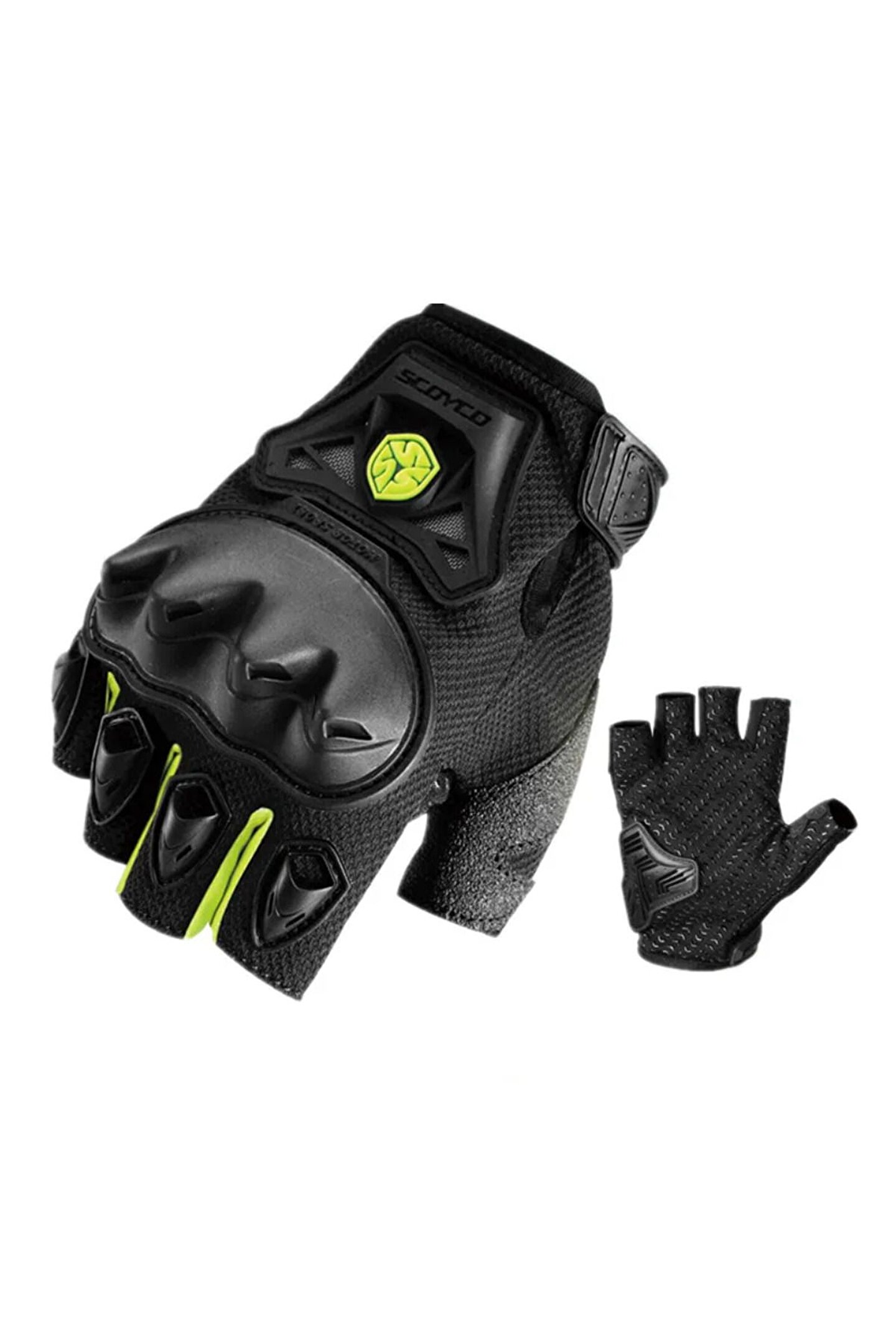 Motosiklet Eldiven Korumalı Yazlık Full Koruma Yarım Parmak Kaydırmaz Kumaş Yeşil Motor Eldiven