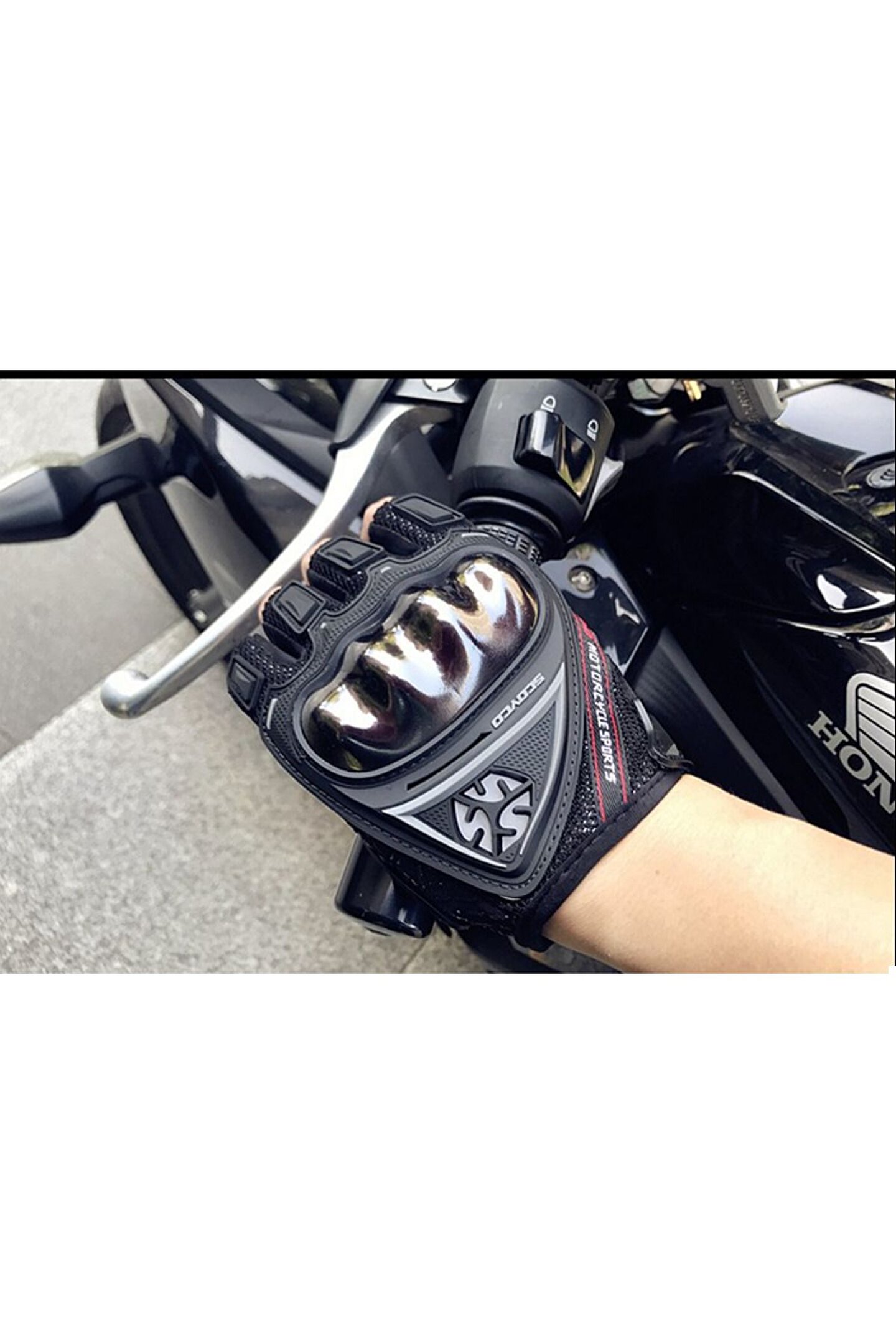 Motosiklet Eldiveni Nikel Full Koruma Yarım Parmak Avuç Içi Kaydırmaz Kumaş Siyah Motor Eldiven