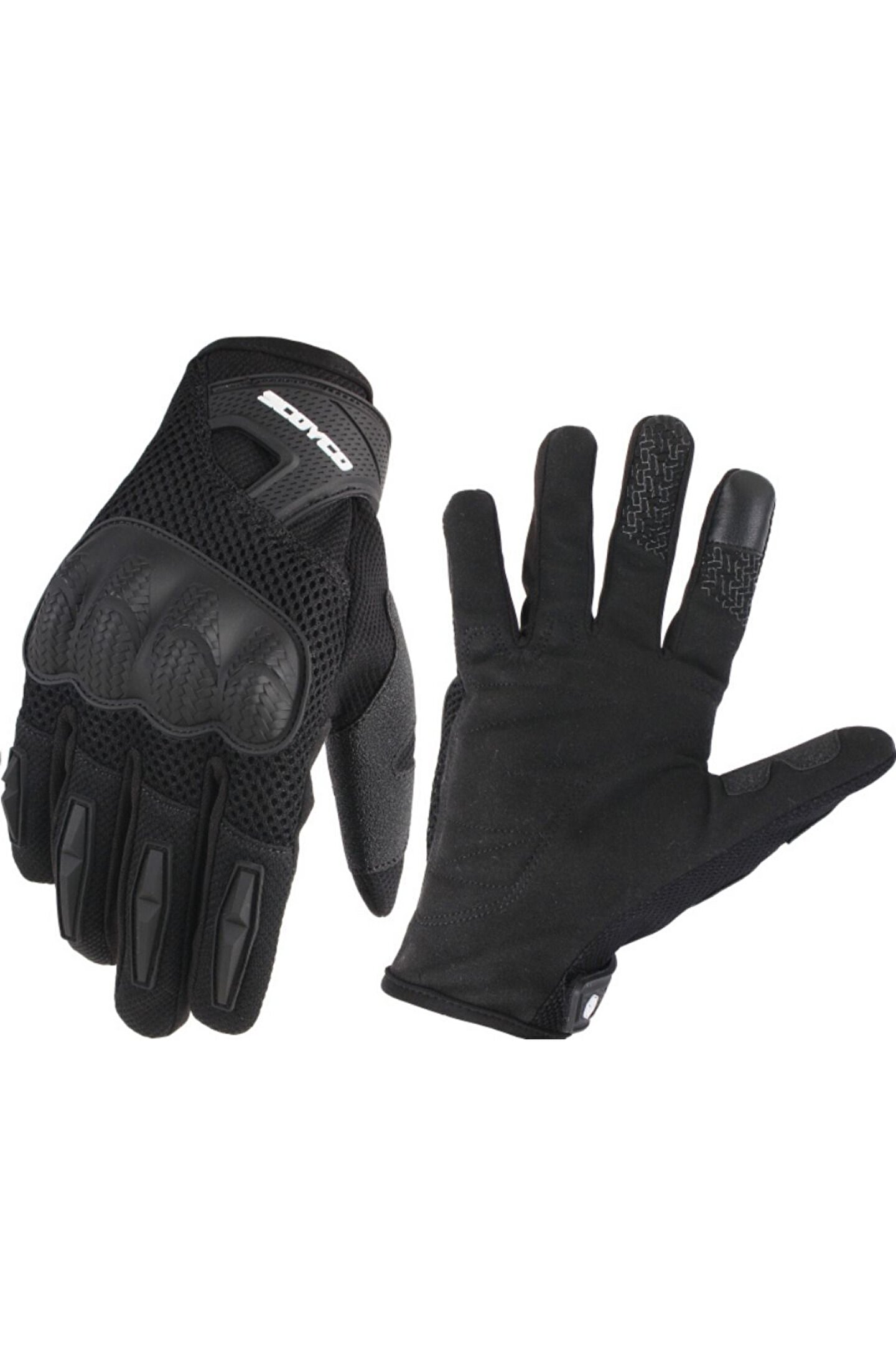 Motosiklet Yazlık Eldiven Darbe Emici Koruma Fileli Mesh Kumaş Tel Dokunmatik Motor Eldiveni Black