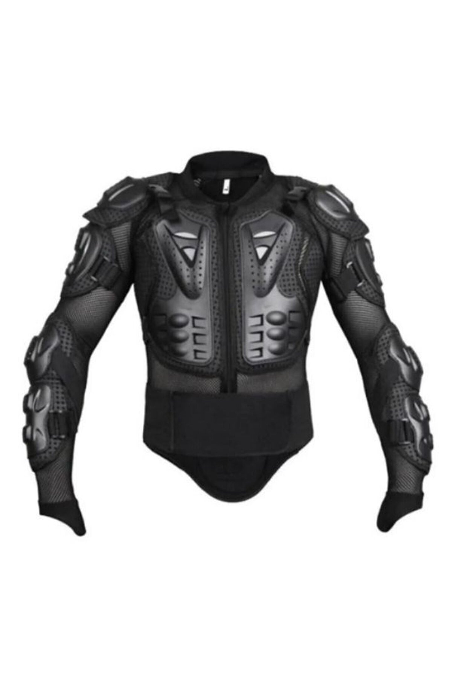 Siyah Body Armor Fileli Yazlık Full Koruma Omuz Sırt Dirsek Göğüs Karın Koruma Cross Motorcu Montu