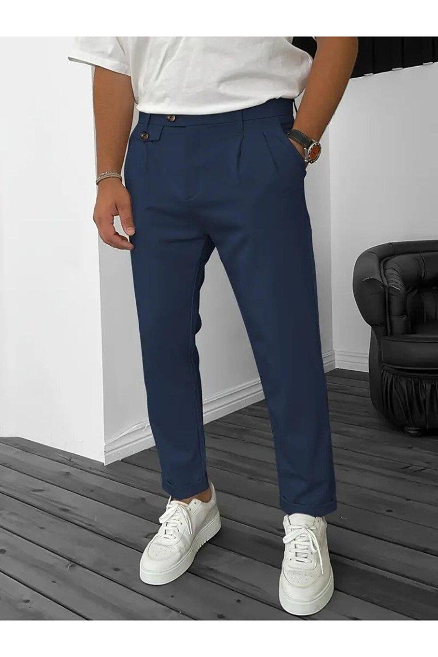 MOTTİSFASHİON Erkek Belden Düğmeli Cepli Dokuma Pantolon