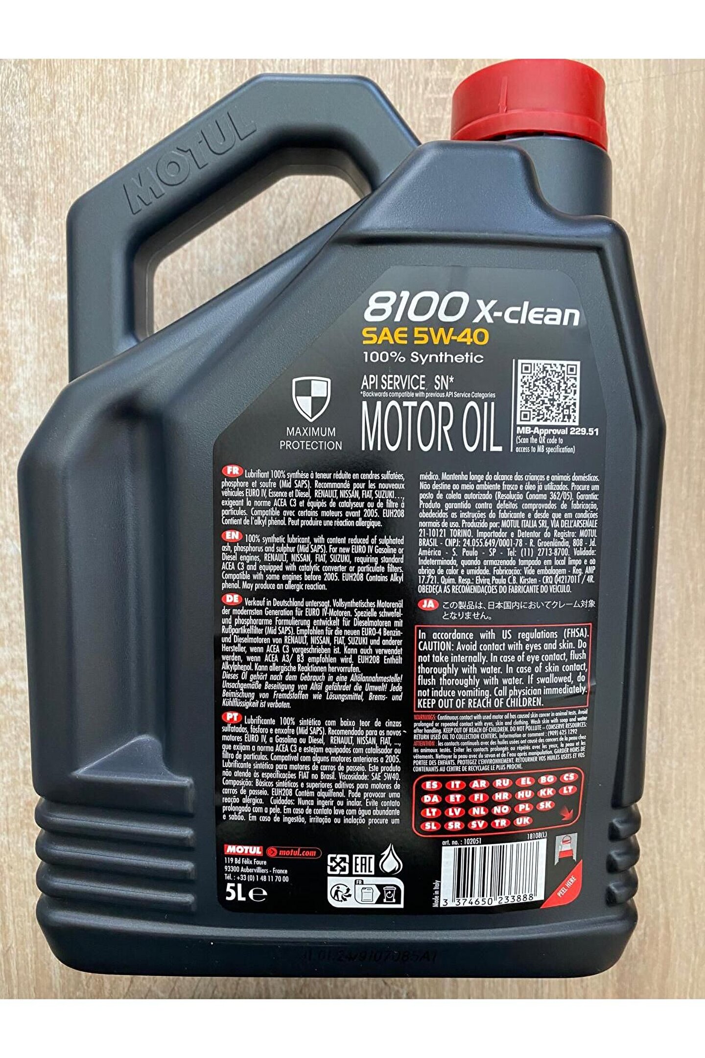 Motul 8100 X-Clean 5W-40 5 Lt Tam Sentetik Motor Yağı UYGULAMA: MOTOR YAĞLARIÜRÜN TIPI: 8100KALITE: %100 TAM SENTETIKÜRÜN YELPAZESI: OTOMOBILVISKOSITE: 5W-40ACEA STANDARTLARI: ACEA C3API STANDARTLARI: API SN/CFOEM ONAYLARI: BMW LL-04 ; FORD WSS M2C 917 A ; GM-OPEL DEXOS2TM ; MB-APPROVAL 229.51 ; PORSCHE A40 ; RENAULT RN0710 - RN0700 ; VW 502 00 – 505 00 – 505 01; FIAT 9.55535-S2 Dizel Partikül Filtreleri (DPF) ve Üçlü Katalitik Konvertörler için özel olarak tasarlamış yağ.; Turbo dizel direkt enjeksiyonlu motorlar veya benzin motorları ile tahrik edilen araçlar için uygundur.; EURO iV ve EURO V emisyon normlarına uygun, ACEA C3 motor yağı.; Yüksek HTHS viskozite ve “Orta SAPS” gerektiren araçlar için özel olarak tasarlanmıştır.; Araç bilgisayarı bulunan araçlarda en yüksek değişim aralığına ulaşmak mümkündür.