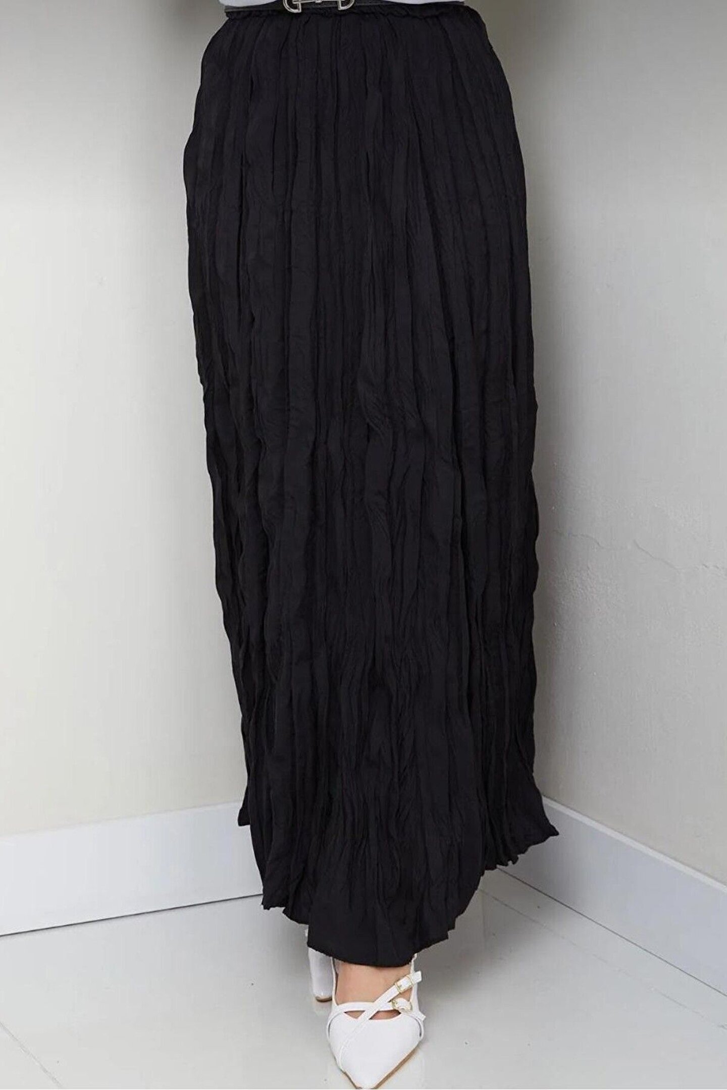 Kadın Kırışık Uzun Kloş Siyah Tesettür Etek