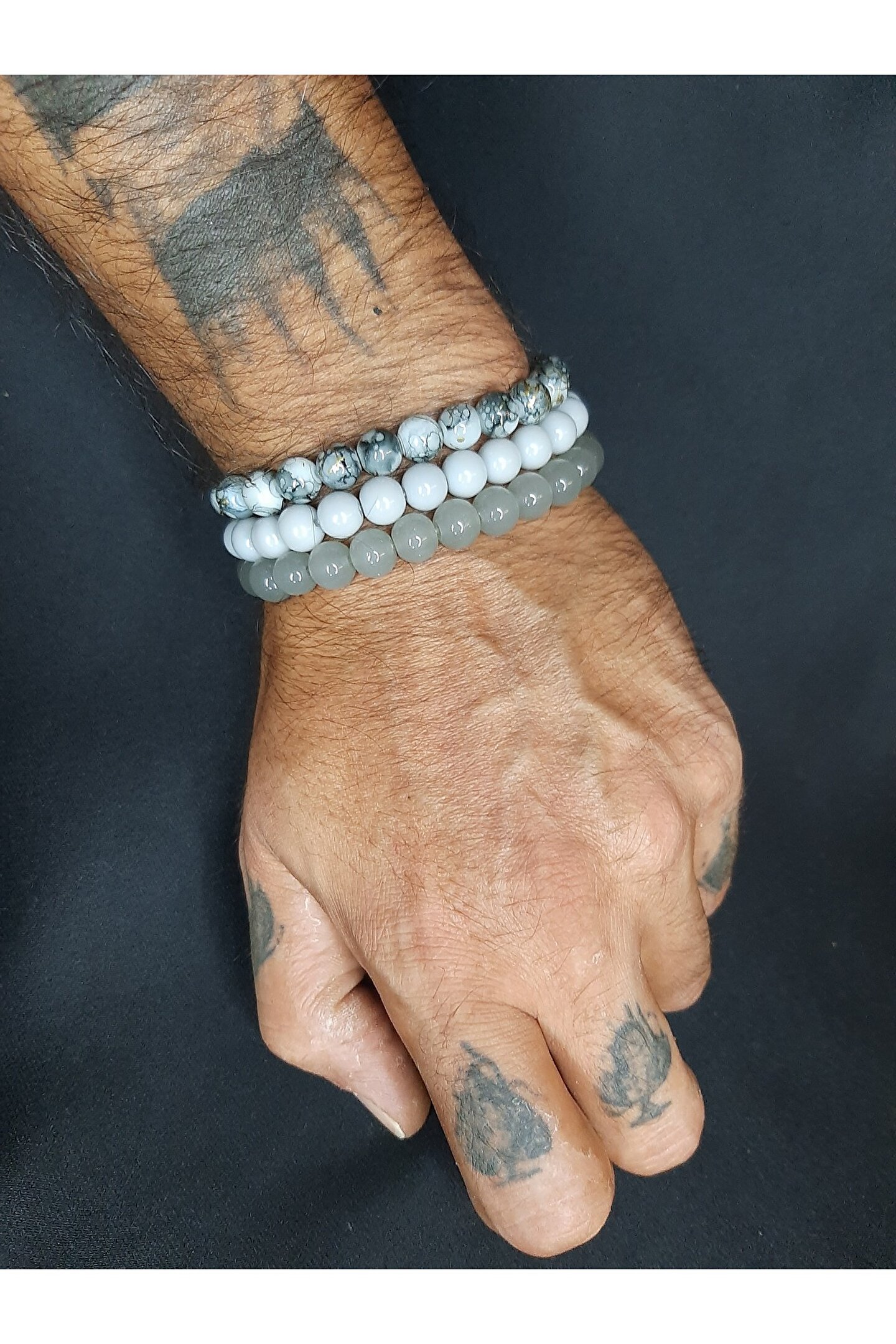 - Üç farklı cam boncuk bileklikten oluşan set, hem kadınların hem de erkeklerin kullanımına uygun olarak tasarlanmıştır.; - Her bileklikteki oval şekilli cam boncuklar, zarif ve şık bir görünüm sunar.; - Kolay bakım imkanı sağlayan bu bileklikler, nemli bir bez ile temizlenebilir; böylece uzun süre ilk günkü gibi kalır.; - Unisex tasarımı sayesinde herkes tarafından rahatlıkla tercih edilebilir; yetişkinler için idealdir.; - Üretiminde kullanılan cam malzeme, dayanıklılığı ve estetik duruşuyla dikkat çeker.; - Türkiye menşeli olan bu ürünler, yerel üretim avantajını yansıtarak kalite standartlarına sahiptir.;