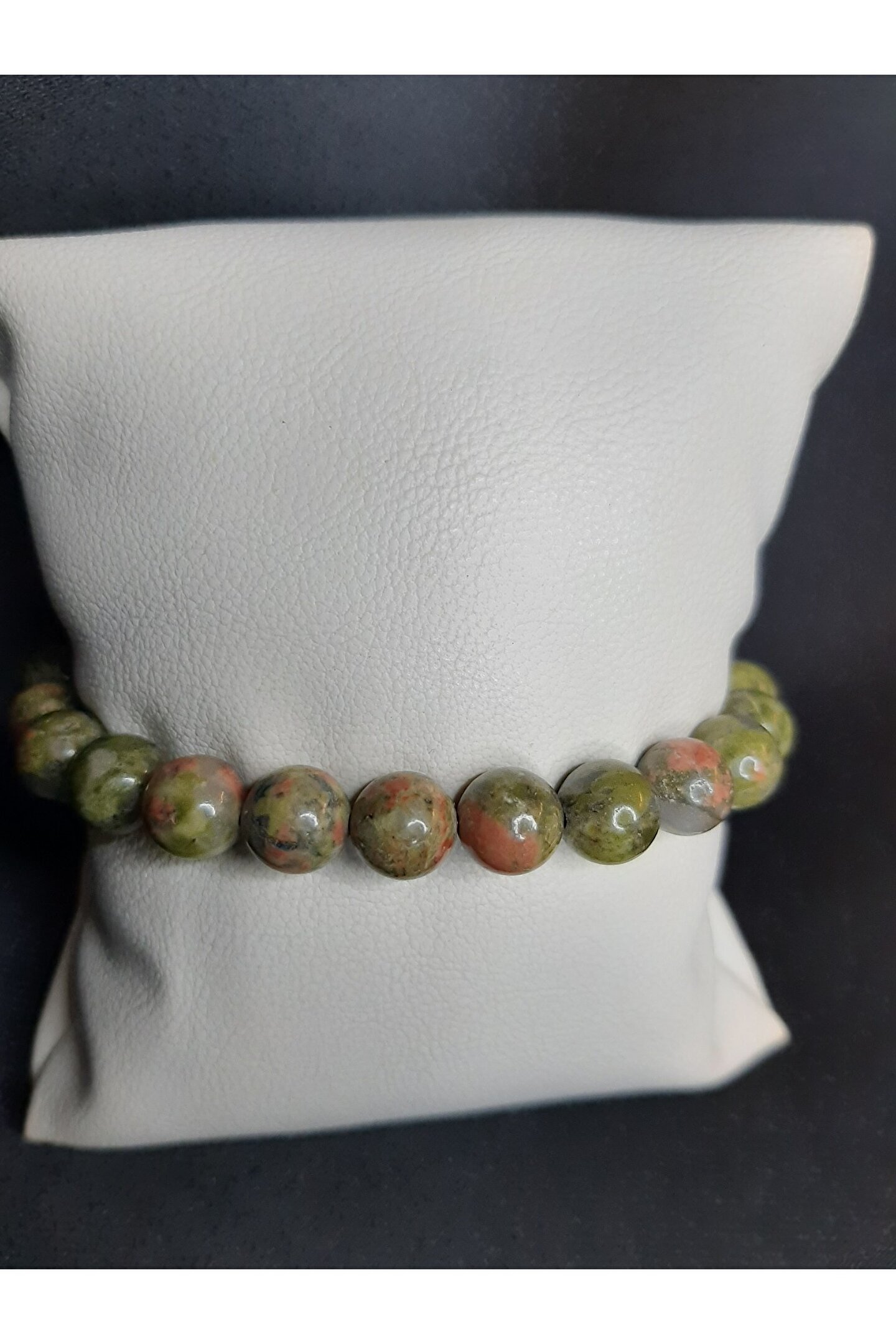 - Doğal taşlardan üretilmiş, her biri benzersiz desenlere sahip unakit taşı bileklik, doğanın estetiğini bileğinizde hissedin.; - Unisex tasarımıyla hem kadınların hem de erkeklerin günlük kullanımına uygun, şıklığı ve rahatlığı bir arada sunar.; - Yetişkinler için ideal bir aksesuar seçeneği olarak, her yaş grubuna hitap eden zarif bir görünüm sağlar.; - Bakımı kolaydır; sadece nemli bir bezle silerek temizliği yapılabilir, böylece bilekliğiniz her zaman ilk günkü gibi parlak kalır.; - Türkiye'de üretilen bu bileklik, yerel zanaatkarlık becerilerinin bir ürünü olarak gururla sunulur.;