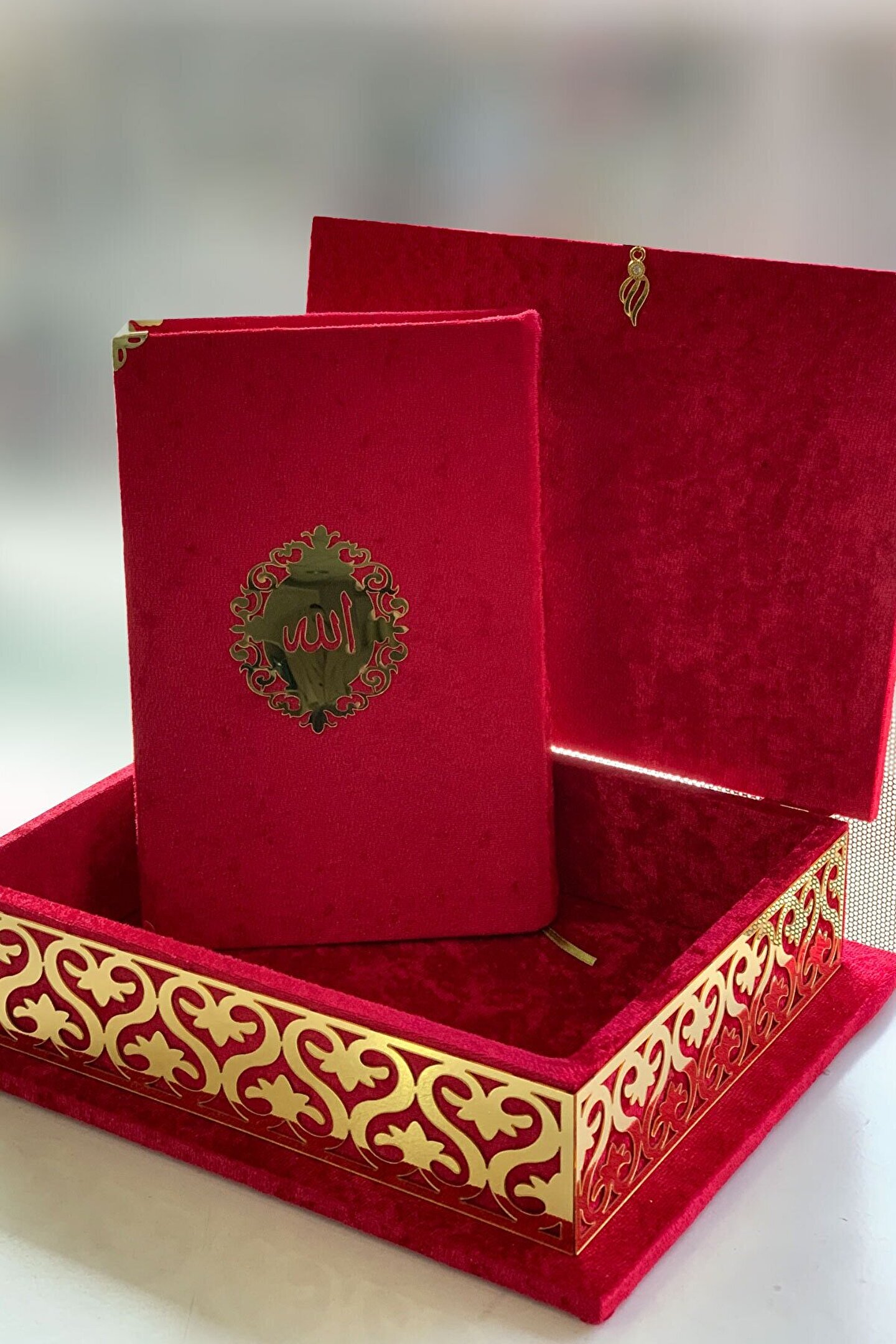 Çeyizlik Lüks Kırmızı Sandıkta Kadife Kuranı Kerim