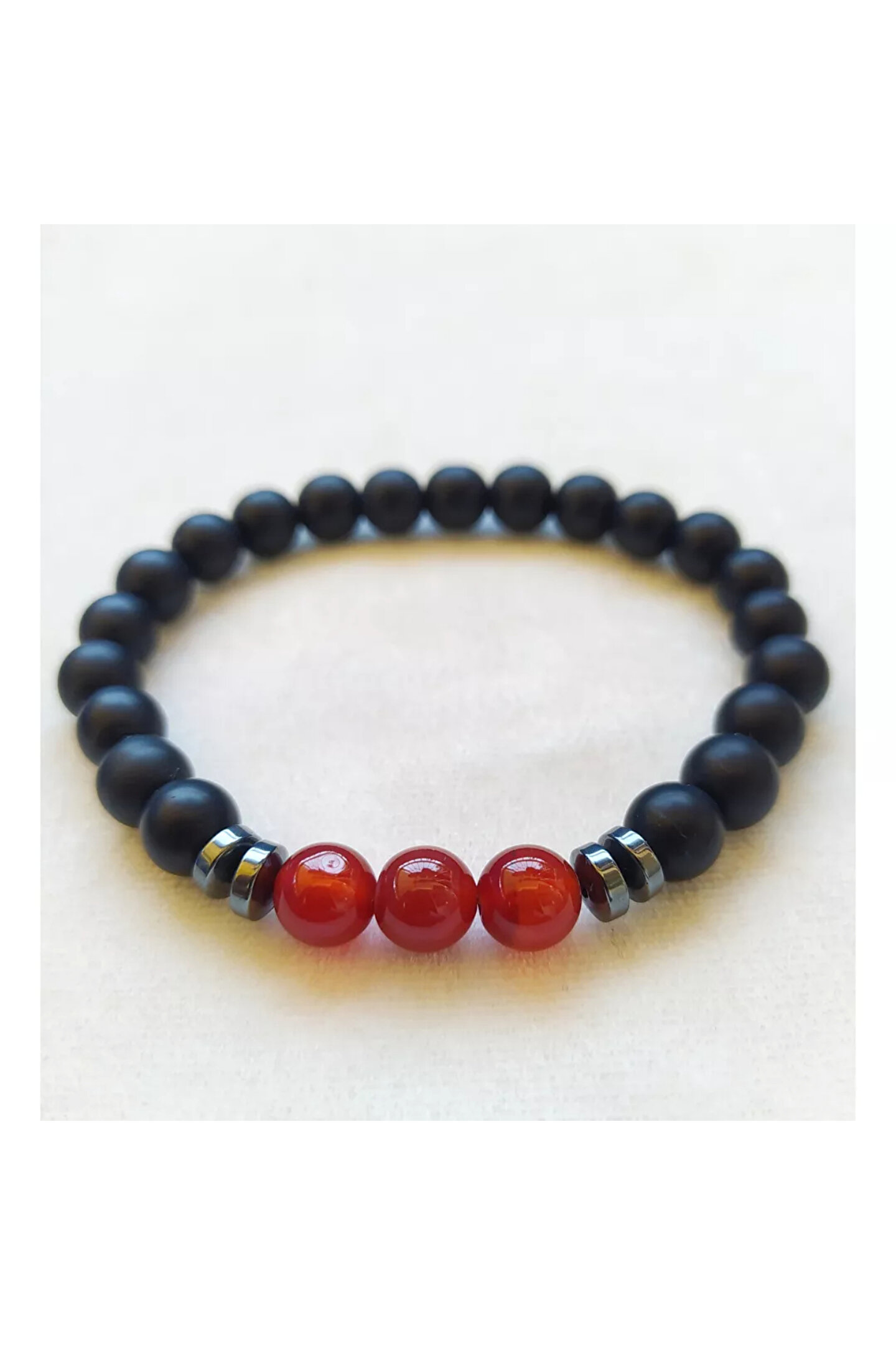 Doğal akik taşı kullanılarak üretilmiş, her biri benzersiz ve özgün bir tasarım sunar; Unisex tasarımı ile hem kadınlar hem de erkekler için uygun, şık ve modern bir aksesuar seçeneği sağlar; Doğal taşın zarif dokusu ve renk tonları, bilekliğe doğal bir estetik katarken, günlük kullanım için idealdir; Bileklik, dayanıklılığı ve uzun ömürlü kullanımı ile dikkat çeker; kaliteli malzemeler sayesinde uzun süreli kullanım vaat eder;