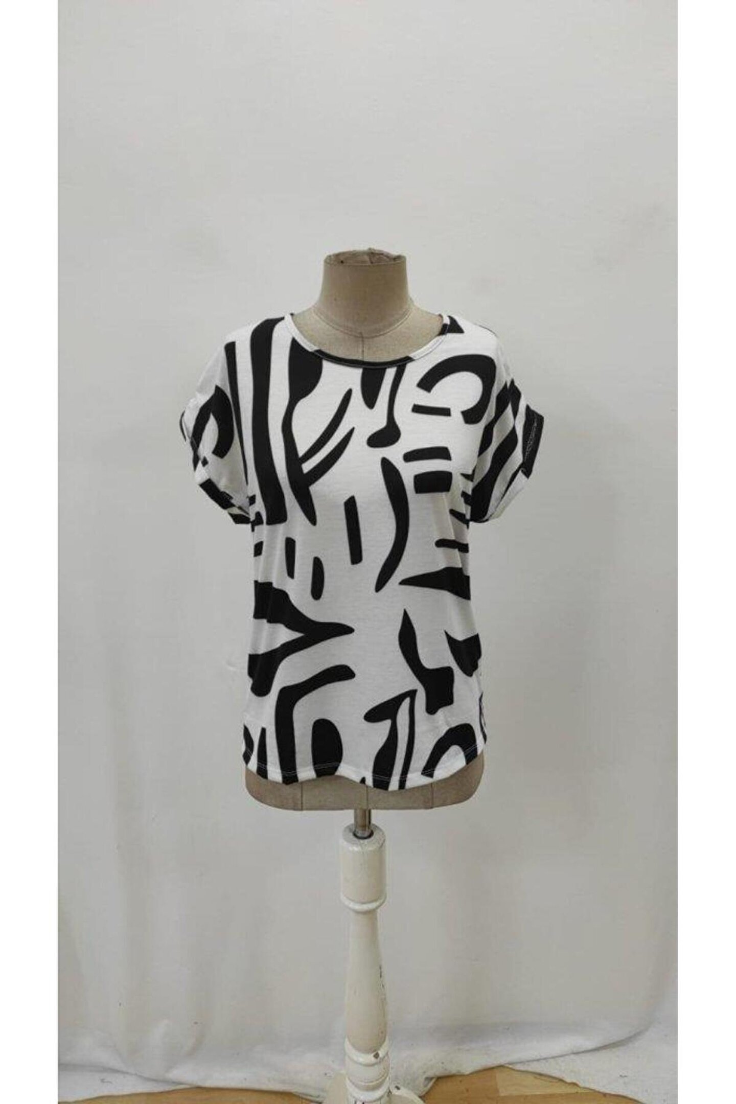 Kadın Kısa Kollu Yuvarlak Yaka Desenli Süprem Bluz