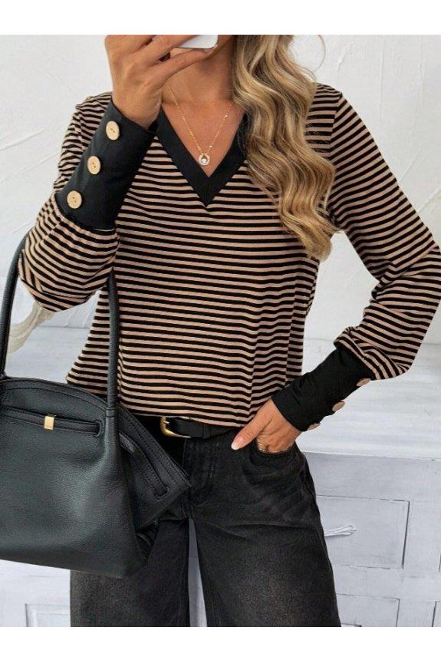 Kadın Uzun Kollu V Yakalı Desenli Süprem Bluz