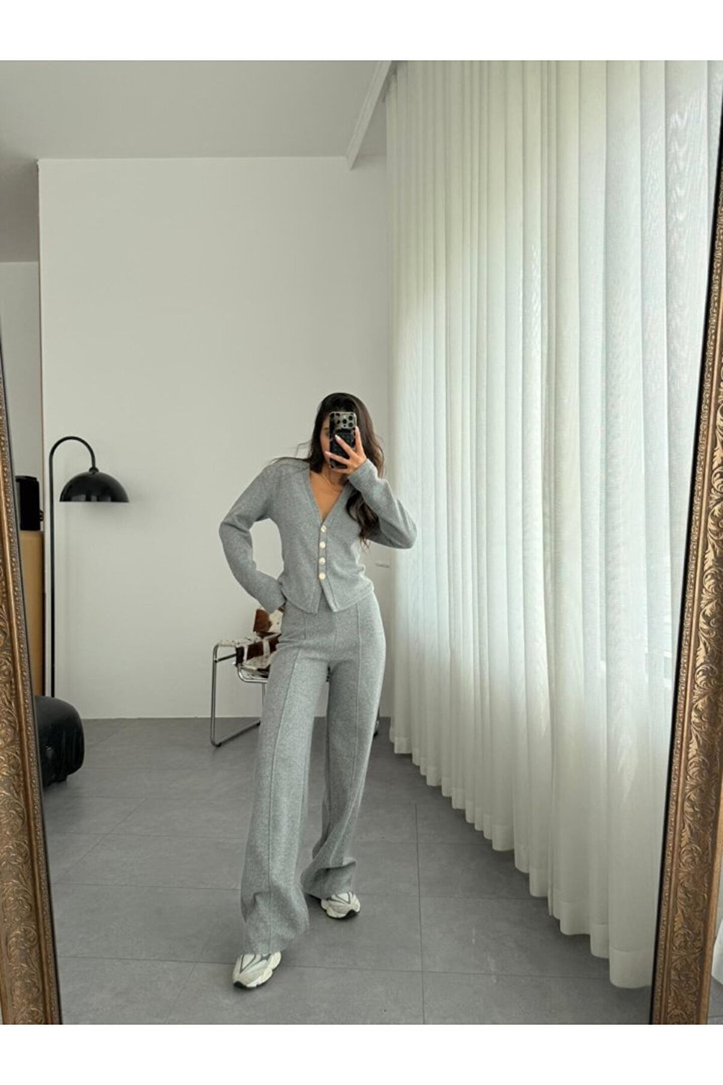 Selanik Kumaş Ön Düğmeli Ceket Çımalı PantolunTakım