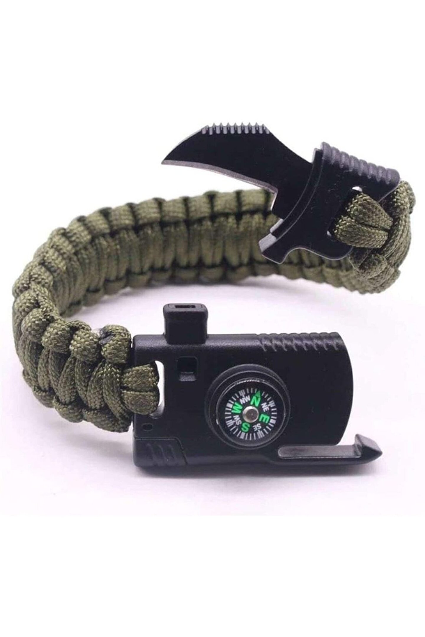 Bıçaklı Paracord Paraşüt Ipi Bileklik - Ateş Başlatıcı- Düdük - Pusula (haki)