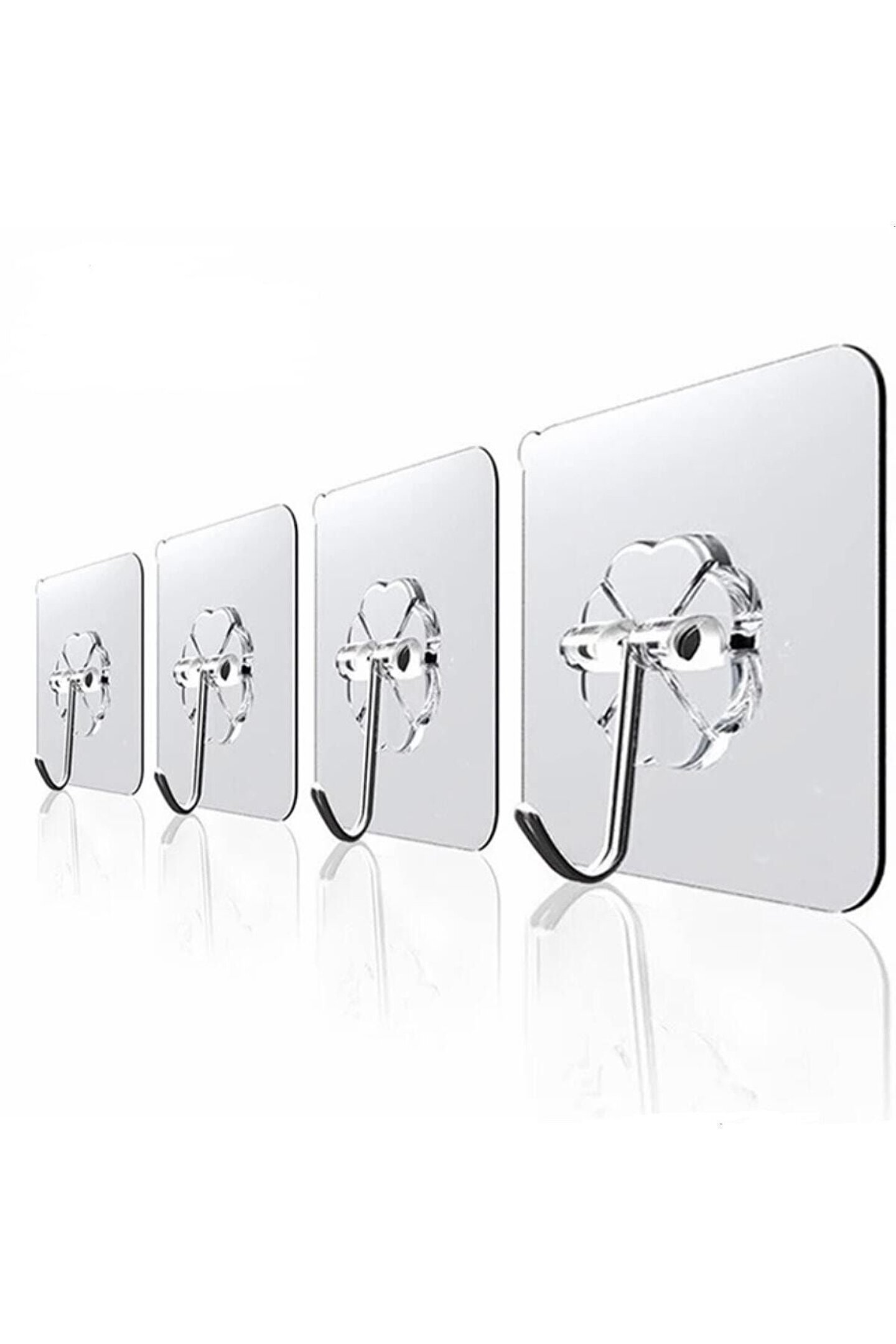 4 Adet 6x6 cm Kendinden Yapışkanlı Şeffaf Güçlü Askı Kapı Duvar Askıları Ağır Yük Taşıma Askısı