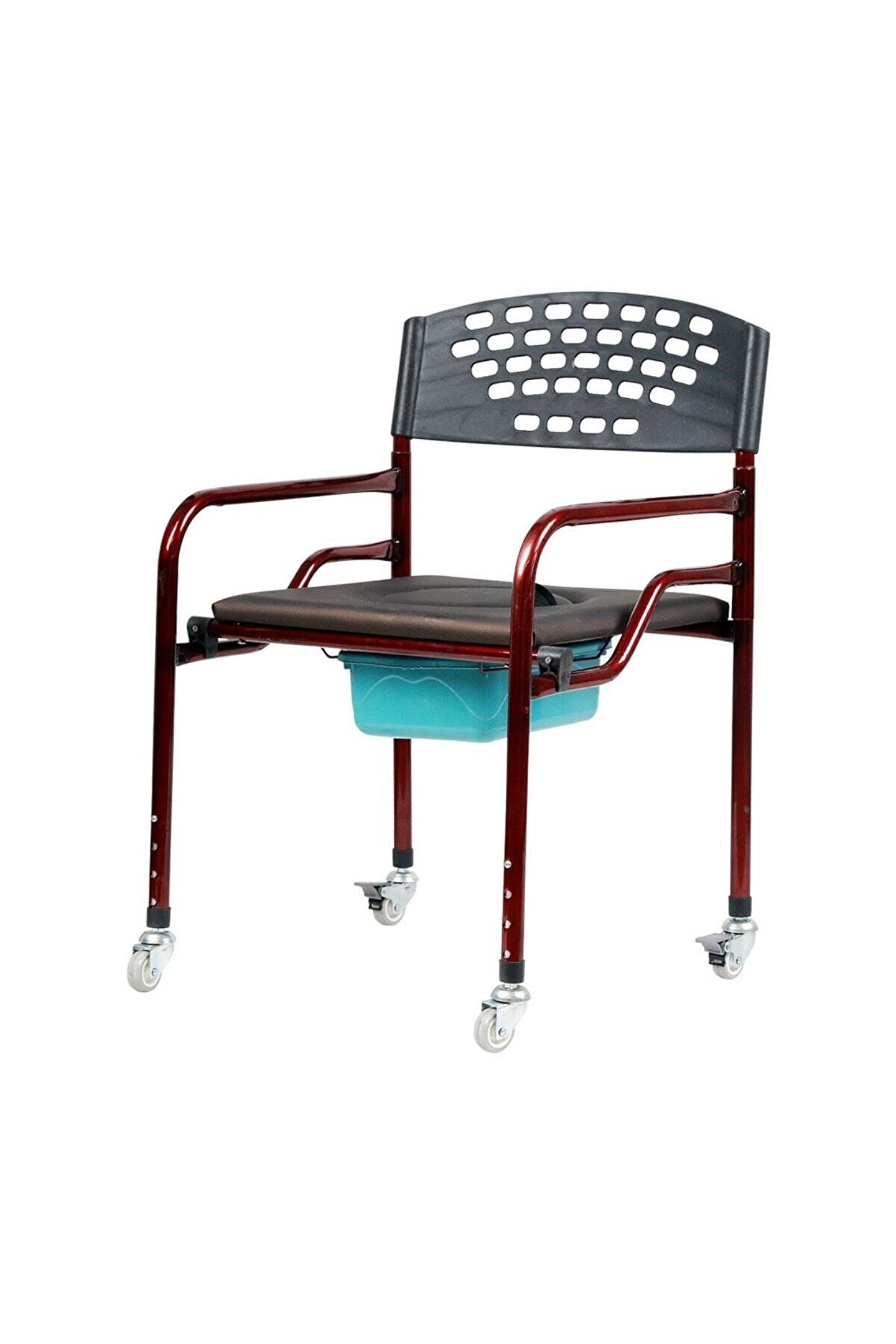 Tekerlekli Deri Döşeme Klozet Yükseltici Komot