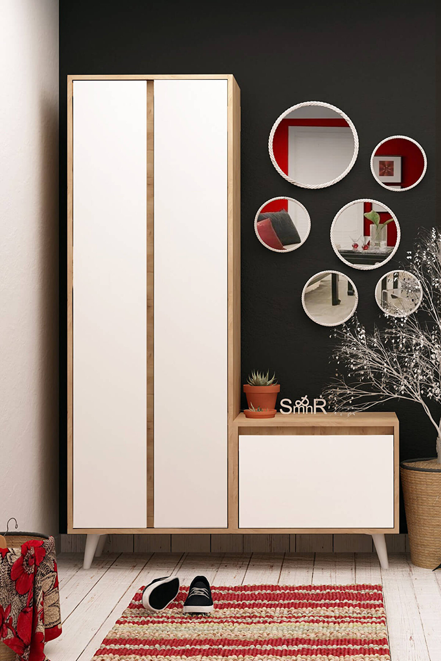 Ürün Ölçüleri;G120 cm D35 cm Y182 cm;G:Genişlik D:Derinlik Y:Yükseklik;Malzemeler;GÖVDE: ALTIN MEŞE SUNTALAM;KAPAK: BEYAZ SUNTALAM;AYAK: 12 CM PLASTİK BEYAZ AYAK;Renk;BEYAZ-MEŞE;Ürün Özellikleri;*Kullanılan Tüm Malzemeler TSE onaylı, E1 Kalitesinde olup Kanserojen madde içermez ve Anti Bakteriyeldir.;*Görseldeki ayna ve tüm diğer aksesuarlar dekorasyon amaçlıdır. Ürüne dahil değildir.; *Montajı kolaylaştıracak biçimde kurulum talimatı yer almaktadır. Minimal ölçüleri ile dar alanlarda çözüm ortağı olabilir. Kapalı saklama alanları ile depolama ihtiyacınızı karşılayacak niteliktedir. Şık bir ayna ile kombinlendiğinde, tüm mekanlarda dekorasyon ögesi olarak yer alabilir.;Montaj;Ürünlerimiz özel kargo paketinde demonte olarak teslim edilir.;Paketlerde gerekli kurulum şeması, tüm vida ve aksesuarların montaj seması ile uyumlu malzeme torbası ve kullanma kılavuzu çıkmaktadır.;Kurulum müşteriye aittir.;Hızlı ve hatasız kurulum için montaj şeması bulunmaktadır.;Ürün kurulumunda profesyonel yardım alınmalıdır.;Montaj İçin Gerekli Aletler;*Şarjlı Tornavida;*Çekiç;Değişim ve İade Koşulları;Ürünü kargodan teslim alınırken paketler mutlaka kontrol edilmeli, hasarlı paket veya ürünler teslim alınmamalı ve kargo yetkilisine hasar tespit tutanağı hazırlanması doğrultusunda yardım talep etmeniz gerekmektedir.;Çevreye ve sağlığa zararsız kanserojen madde içermeyen E1 kalite standardında malzeme kullanılmıştır.;Aksesuarlar;* Montaj: Ürün kurulu olmadan (demonte olarak) kutulu halde teslim edilmektedir.; * Kutu içinde tüm kurulum için gerekli olan malzeme çıkmaktadır (Bazı ürünlerin kurulumu için ek olarak tornavida, çekiç gerekebilir);* Ürün resimlerindeki aksesuarlar teşhir amaçlı olup, fiyata dahil değildir.