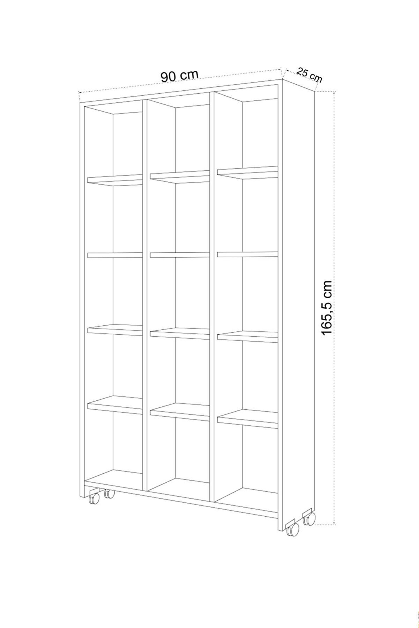 Ürün Ölçüleri;G90 cm D25 cm Y165,5 cm;G:Genişlik D:Derinlik Y:Yükseklik;Malzemeler;GÖVDE: BEYAZ SUNTALAM;PVC: KOYU MEŞE;Renk;BEYAZ/ KOYU MEŞE;AYAK;5,5 CM PLASTİK TEKERLEK;Ürün Özellikleri;Kullanılan Tüm Malzemeler TSE onaylı , E1 Kalitesinde olup Kanserojen madde içermez ve Anti Bakteriyeldir.;Montajı kolaylaştıracak şekilde kurulum talimatı yer almaktadır. Ürün tekerlekli ayakları sayesinde basitçe taşınabilir, yer değiştirebilir durumdadır.;Renkli ön yüzü ile beyaz gövde üzerinde farklılık arayanları sevindirecek niteliktedir. Depolama ihtiyacını giderebilecek minimal ölçülere sahiptir. ;Tüm mekanlarda derleyici dekorasyon ögesi olarak kullanılmaya uygundur.;Montaj;Ürünlerimiz özel kargo paketinde demonte olarak teslim edilir.;Paketlerde gerekli kurulum şeması, tüm vida ve aksesuarların montaj seması ile uyumlu malzeme torbası ve kullanma kılavuzu çıkmaktadır.;Kurulum müşteriye aittir.;Hızlı ve hatasız kurulum için montaj şeması bulunmaktadır.;Ürün kurulumunda profesyonel yardım alınmalıdır.;Montaj İçin Gerekli Aletler;*Şarjlı Tornavida;*Çekiç;Değişim ve İade Koşulları;Ürünü kargodan teslim alınırken paketler mutlaka kontrol edilmeli, hasarlı paket veya ürünler teslim alınmamalı ve kargo yetkilisine hasar tespit tutanağı hazırlanması doğrultusunda yardım talep etmeniz gerekmektedir.;Çevreye ve sağlığa zararsız kanserojen madde içermeyen E1 kalite standardında malzeme kullanılmıştır.;Aksesuarlar;* Montaj: Ürün kurulu olmadan (demonte olarak) kutulu halde teslim edilmektedir.;* Kutu içinde tüm kurulum için gerekli olan malzeme çıkmaktadır (Bazı ürünlerin kurulumu için ek olarak tornavida, çekiç gerekebilir);* Ürün resimlerindeki aksesuarlar teşhir amaçlı olup, fiyata dahil değildir.
