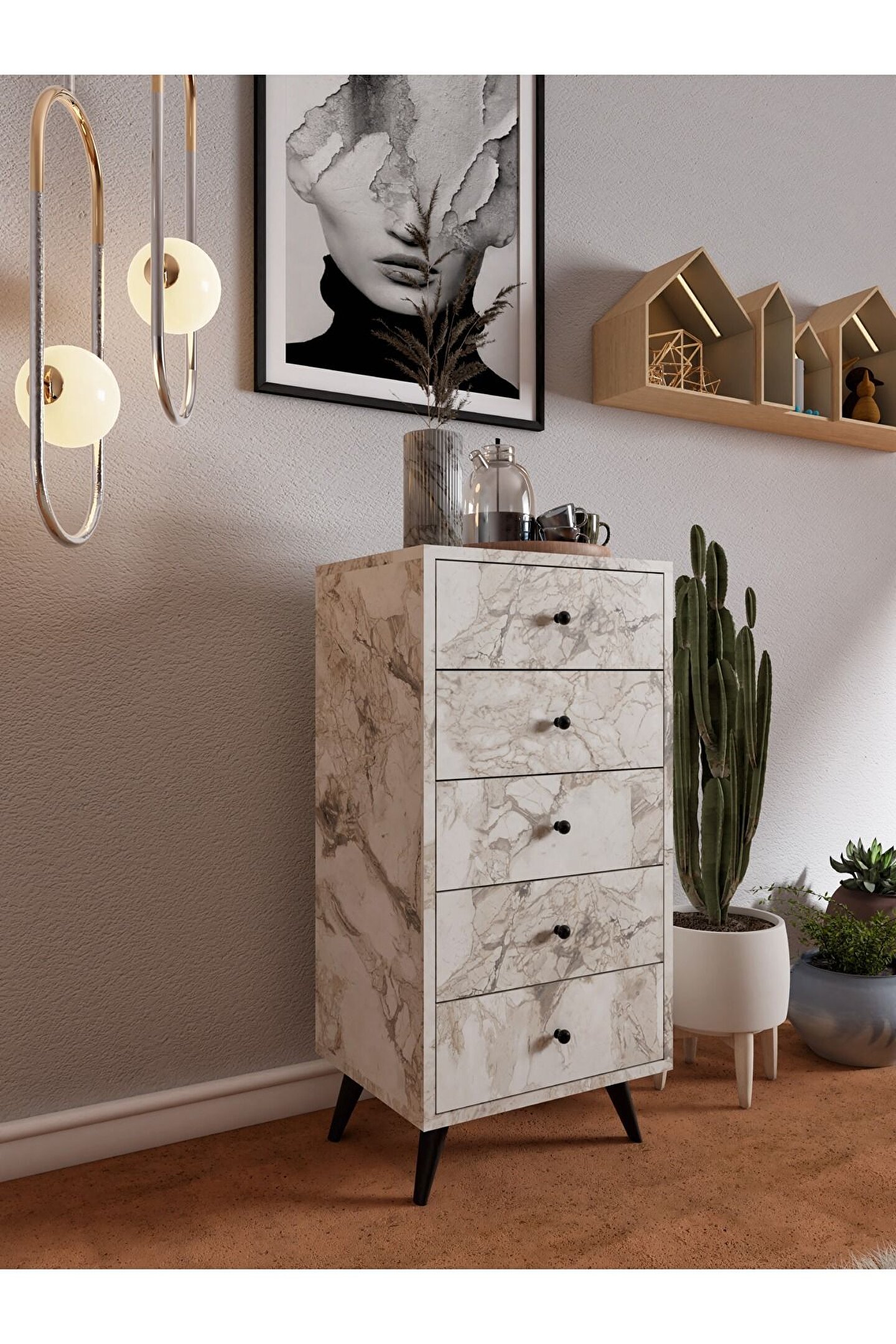 Modern tasarımıyla evinizin dekorasyonuna şıklık katan Frenzu 5 çekmeceli şifonyer, yaşam alanlarınıza çağdaş bir dokunuş ekler; Beş geniş çekmece kapasitesiyle, giysilerinizden aksesuarlarınıza kadar tüm eşyalarınızı düzenli bir şekilde saklamanızı sağlar; Suntalam malzemesi sayesinde dayanıklılık ve uzun ömürlü kullanım sunar; 5 yıl garanti süresi ile kalitesine güvenebilirsiniz; Modern tema ve stil anlayışını yansıtan bu şifonyer, hem fonksiyonel hem de estetik bir depolama çözümüdür;