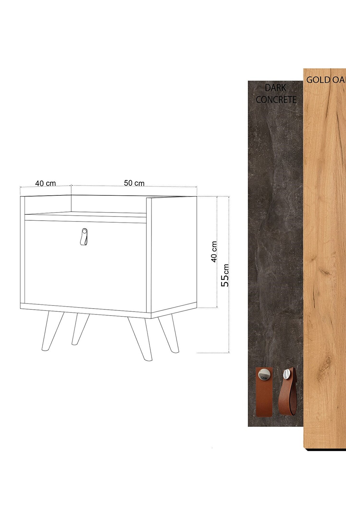 Ürün Ölçülerig50 Cm D40 Cm Y55 Cmg:Genişlik / D:Derinlik / Y:Yükseklikmalzemelergövde: Gold Oak(Altın Meşe) Suntalamkapak: Dark Concrete (Koyu Beton) Suntalamayak:Cilalı Ahşap Ayakkulp:Suni Deri Renkaltın Meşe / Koyu Beton Griürün Özelliklerikullanılan Tüm Malzemeler Tse Onaylı, E1 Kalitesinde Olup Kanserojen Madde İçermez Ve Anti Bakteriyeldir.Montajı Kolaylaştıracak Biçimde Kurulum Talimatı Yer Almaktadır. Ürün Yüzeyinde Bulunan Ahşap Doku, Doğal Ağacı Aratmayacak Görünümdedir. Beton Desenli Malzeme İle Birleşerek Ultra Modern Bir Tasarım Haline Gelmiştir. Suni Deri Kulplar Kullanılarak Betong Plus Serisinin Takıları Tamamlanmıştır. Seriye Ait Diğer Ürünleri Kombin Önerilerinde Bulabilirsiniz..Montajürünlerimiz Özel Kargo Paketinde Demonte Olarak Teslim Edilir.Paketlerde Gerekli Kurulum Şeması, Tüm Vida Ve Aksesuarların Montaj Seması İle Uyumlu Malzeme Torbası Ve Kullanma Kılavuzu Çıkmaktadır.Kurulum Müşteriye Aittir.Hızlı Ve Hatasız Kurulum İçin Montaj Şeması Bulunmaktadır.Ürün Kurulumunda Profesyonel Yardım Alınmalıdır.Montaj İçin Gerekli Aletler*Şarjlı Tornavida*Çekiççevreye Ve Sağlığa Zararsız Kanserojen Madde İçermeyen E1 Kalite Standardında Malzeme Kullanılmıştır.Aksesuarlar* Montaj: Ürün Kurulu Olmadan (Demonte Olarak) Kutulu Halde Teslim Edilmektedir.* Kutu İçinde Tüm Kurulum İçin Gerekli Olan Malzeme Çıkmaktadır (Bazı Ürünlerin Kurulumu İçin Ek Olarak Tornavida, Çekiç Gerekebilir)* Ürün Resimlerindeki Aksesuarlar Teşhir Amaçlı Olup, Fiyata Dahil Değildir.Kombin Ürünler* Beton Plus- Suwon Gardırop* Beton Plus- Paju Komodin* Beton Plus- Soojin Çalışma Masası* Beton Plus- Spanze Şifonyer*Beton Plus- Eleva Tv Ünitesi* Beton Plus- Witlof Şifonyer* Beton Plus- Astava Yan Sehpa* Beton Plus- Seva Tv Sehpası* Beton Plus- Soomin Çalışma Masası* Beton Plus- Olenj Komodin* Beton Plus- Laven Dresuar* Beton Plus- Olenj Komodin* Beton Plus- Plamen Dresuar*Betong Plus-Dencia Konsol*Betong Plus-Pagina Konsol*Betong Plus-Polla Komodin*Betong Plus-Joseph Tv Ünitesi*Betong Plus-Marco Şifonyer;Ürünlerimiz Demonte Halde Ücretsiz Kargo İle Teslim Edilmektedir.;Kurulum Müşteriye Aittir.;Montajı Gerçekleştirilmiş Ürünlerin İadesi Yapılmamaktadır.;Ürünü Teslim Aldıktan Sonra Hasarlı Parçalar Var İse Parça Üzerinde Yazan Numarayı, Eksik Parçalar Var İse Kurulum Semasindan Eksik Parça Numarasını Belirleyip Müşteri Temsilcimize İlettiğinizde Hasarlı/Eksik Parçalar Ücretsiz Sekilde Tarafınıza Gönderilmektedir.