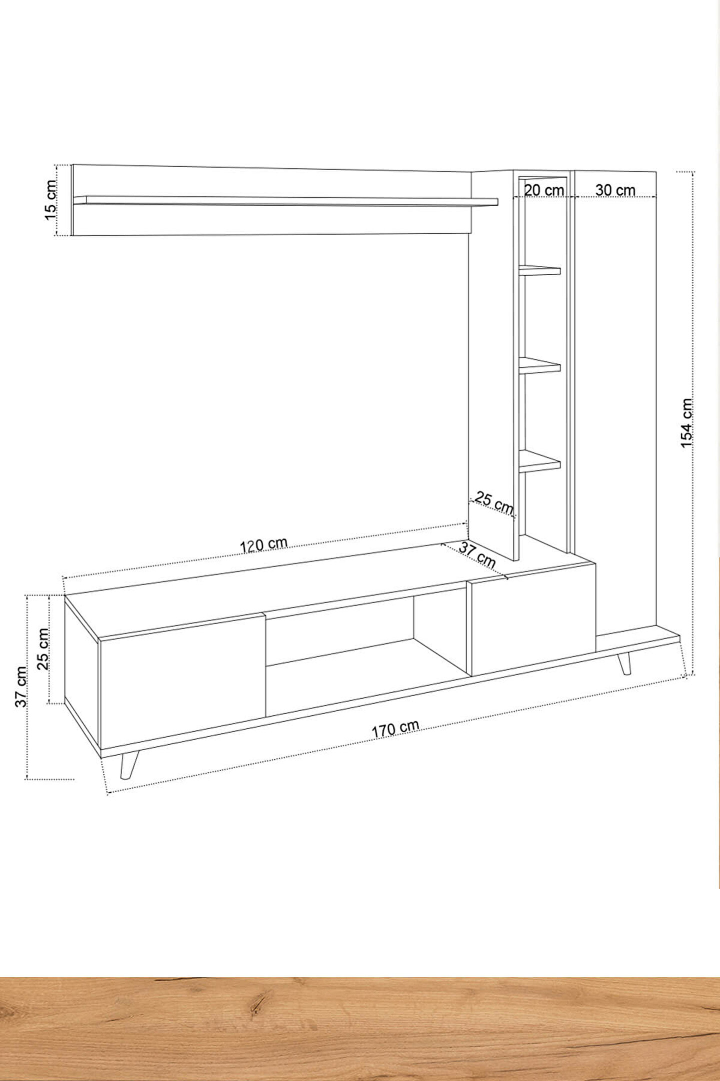 Ürün Ölçüleri;G170 cm D37 cm Y154cm;G:Genişlik D:Derinlik Y:Yükseklik;Malzemeler;GÖVDE: ALTIN MEŞE SUNTALAM;KAPAK: BEYAZ SUNTALAM;Renk;BEYAZ /ALTIN MEŞE;AYAK: 12 CM PLASTİK AYAK;Ürün Özellikleri;Kullanılan Tüm Malzemeler TSE onaylı , E1 Kalitesinde olup Kanserojen madde içermez ve Anti Bakteriyeldir.;Ürün gövdesi 18 mm kalınlığında Parlak Beyaz/Altın Meşe renginde suntalam malzeme kullanılarak üretilmiştir. Yaşam alanlarına modern çizgileriyle şıklık kazandırırken, kapalı ve açık bölmeleri ile depolama ihtiyacınızı giderebilecek niteliktedir.;Montaj;Ürünlerimiz özel kargo paketinde demonte olarak teslim edilir.;Paketlerde gerekli kurulum şeması, tüm vida ve aksesuarların montaj seması ile uyumlu malzeme torbası ve kullanma kılavuzu çıkmaktadır.;Kurulum müşteriye aittir.;Hızlı ve hatasız kurulum için montaj şeması bulunmaktadır.;Ürün kurulumunda profesyonel yardım alınmalıdır.;Ürün montajı tamamlandığında mutlaka duvara sabitlenmelidir.;Montaj İçin Gerekli Aletler;*Şarjlı Tornavida;*Çekiç;Değişim ve İade Koşulları;Ürünü kargodan teslim alınırken paketler mutlaka kontrol edilmeli, hasarlı paket veya ürünler teslim alınmamalı ve kargo yetkilisine hasar tespit tutanağı hazırlanması doğrultusunda yardım talep etmeniz gerekmektedir.;Çevreye ve sağlığa zararsız kanserojen madde içermeyen E1 kalite standardında malzeme kullanılmıştır.;Aksesuarlar;* Montaj: Ürün kurulu olmadan (demonte olarak) kutulu halde teslim edilmektedir.;* Kutu içinde tüm kurulum için gerekli olan malzeme çıkmaktadır (Bazı ürünlerin kurulumu için ek olarak tornavida, çekiç gerekebilir);* Ürün resimlerindeki aksesuarlar teşhir amaçlı olup, fiyata dahil değildir.