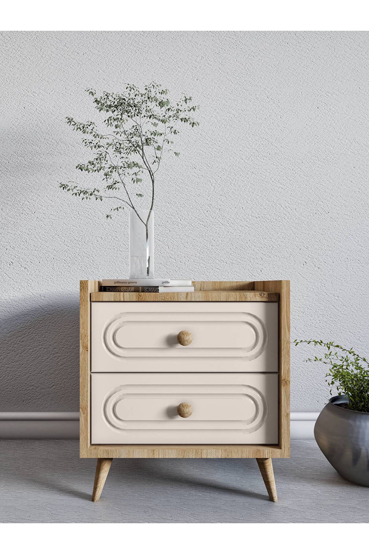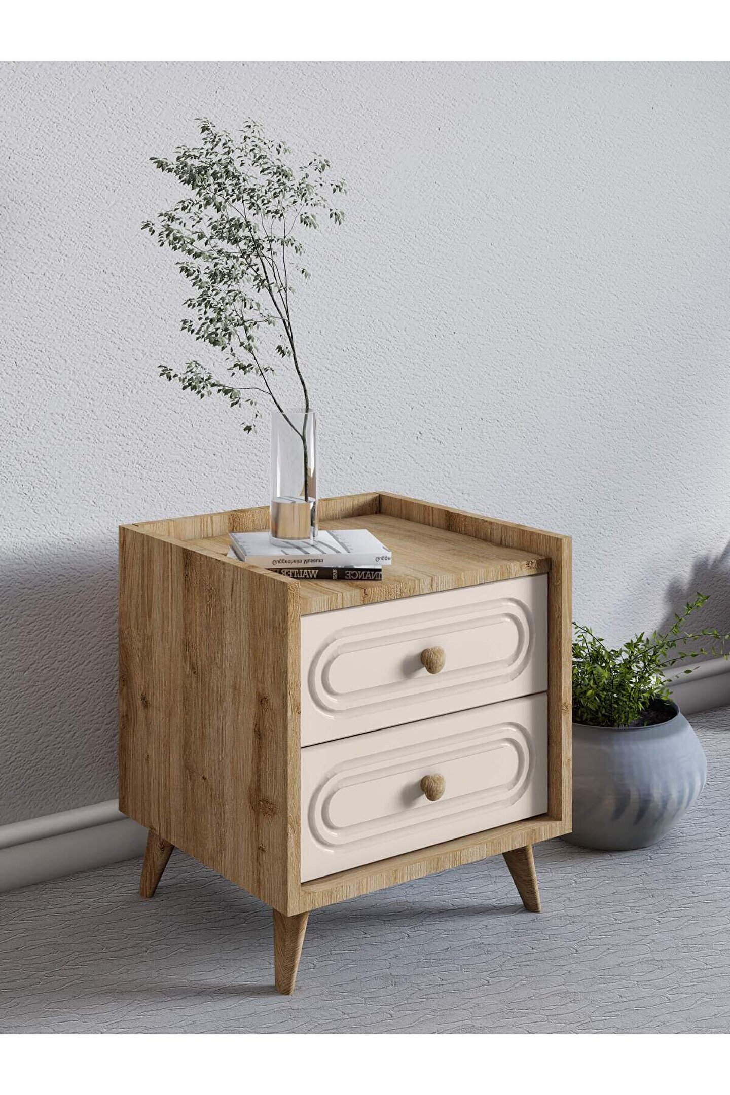 - İki çekmecesi sayesinde kişisel eşyalarınız için ideal depolama çözümü sunar.