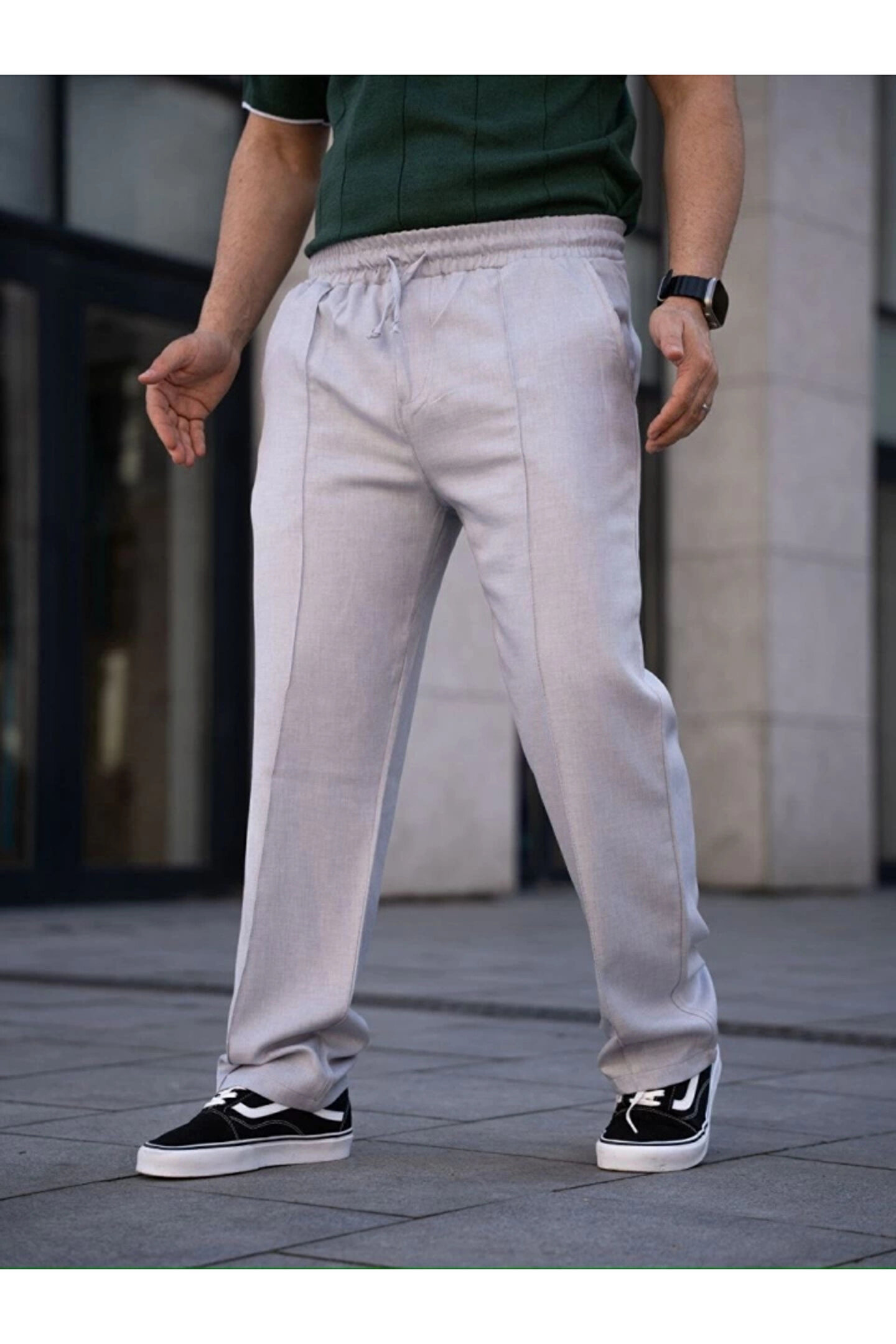 mzpkartan Erkek Keten Cepli Çıma Dikişli Jogger Buggy Pantalon Rahat Kalıp - Gri