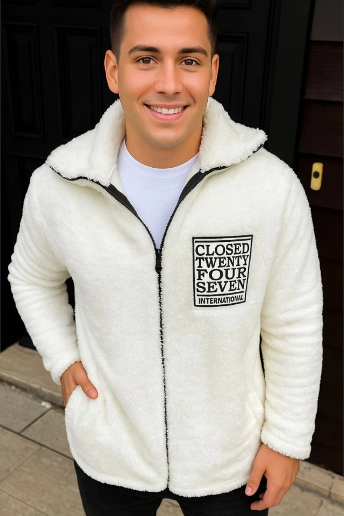 Erkek Polar Fermuarlı Sweatshirt – Kapüşonsuz, Cepli, Yumuşak Dokulu, Oversize Rahat Kalıp, Kışlık S