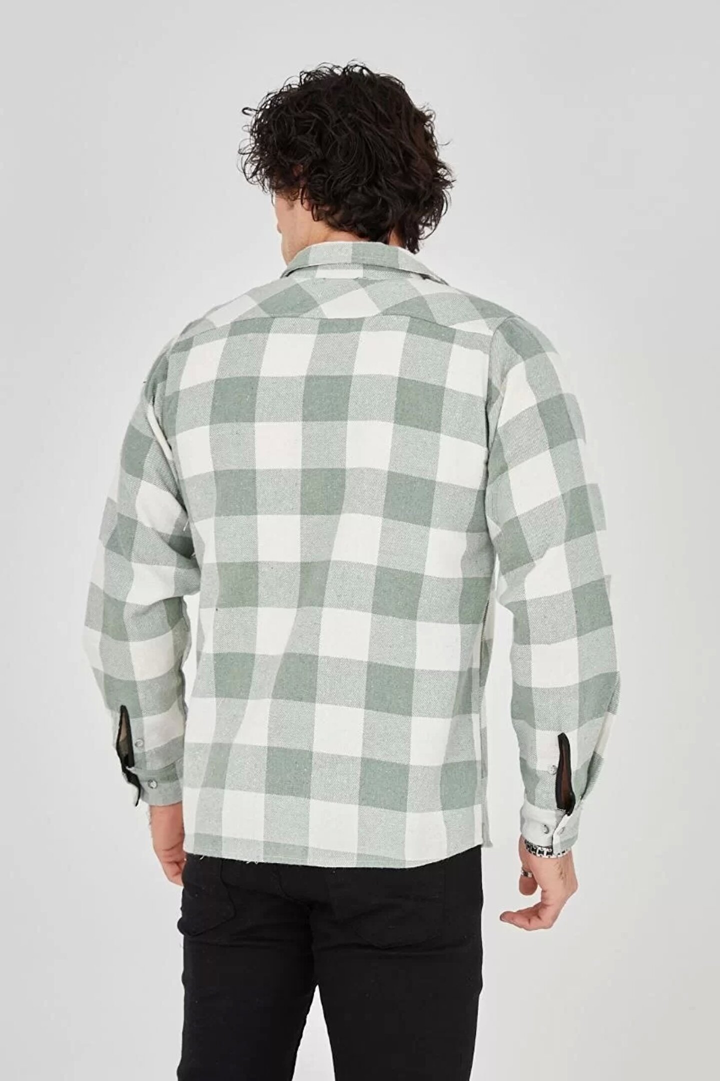 mzpkartan Erkek Uzun Kollu Oduncu Gömlek - Mint yeşili