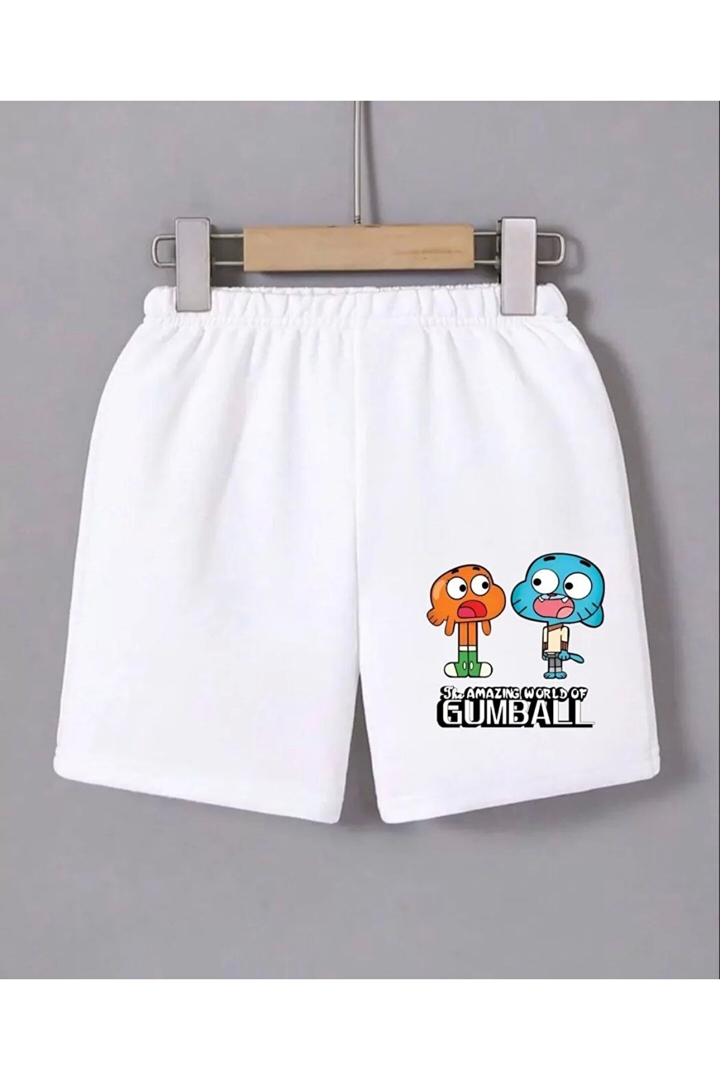 mzpkartan Kadın Beli Lastikli Baskılı Mini Şort - Beyaz